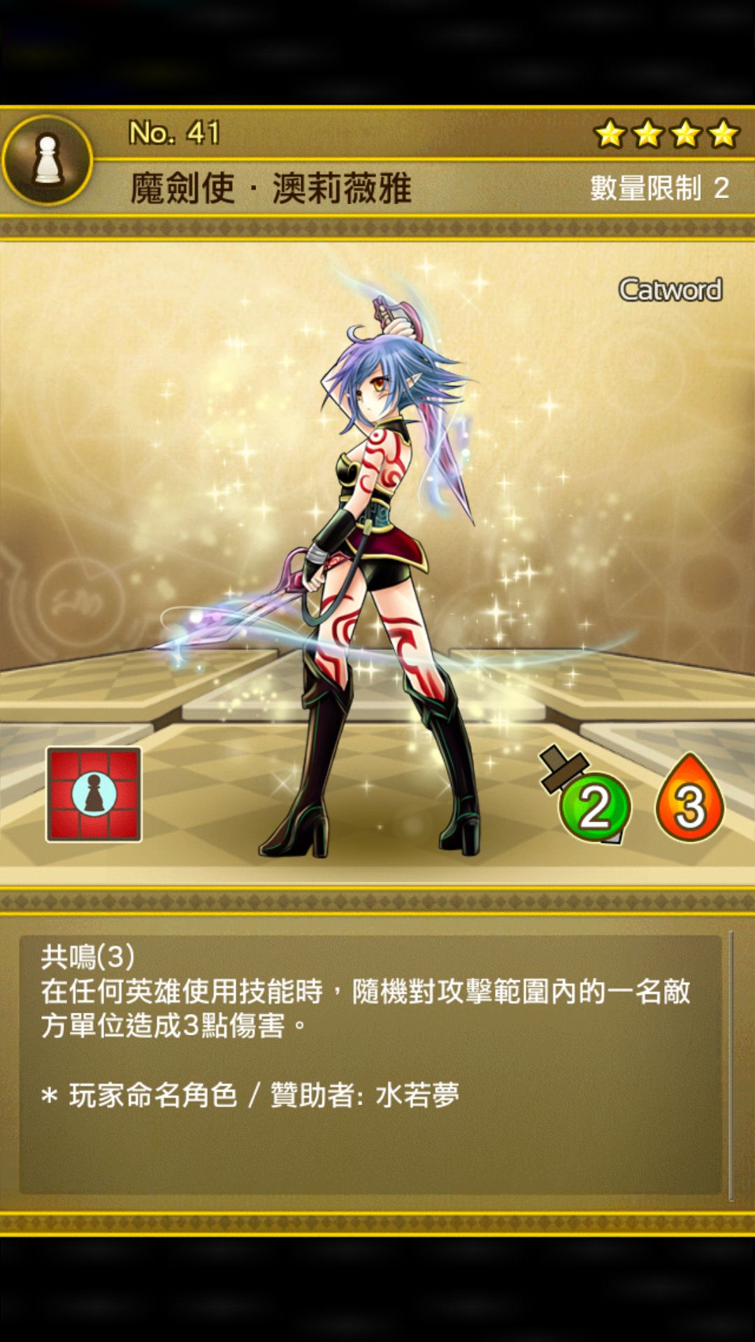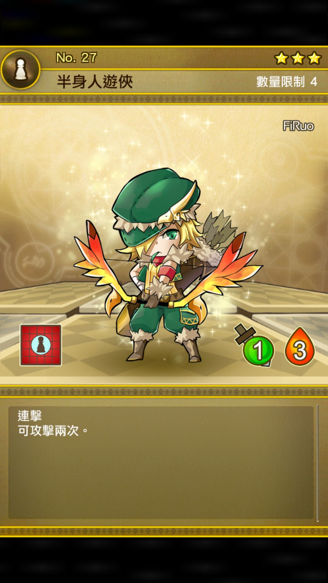 2/3远程贯穿伤害别人都说好,因为是除了落樱戳外唯一一个不需牺牲的长十字棋子,我是觉得十字范围的有死角不太喜欢用,适合摆在boss正下方怼boss