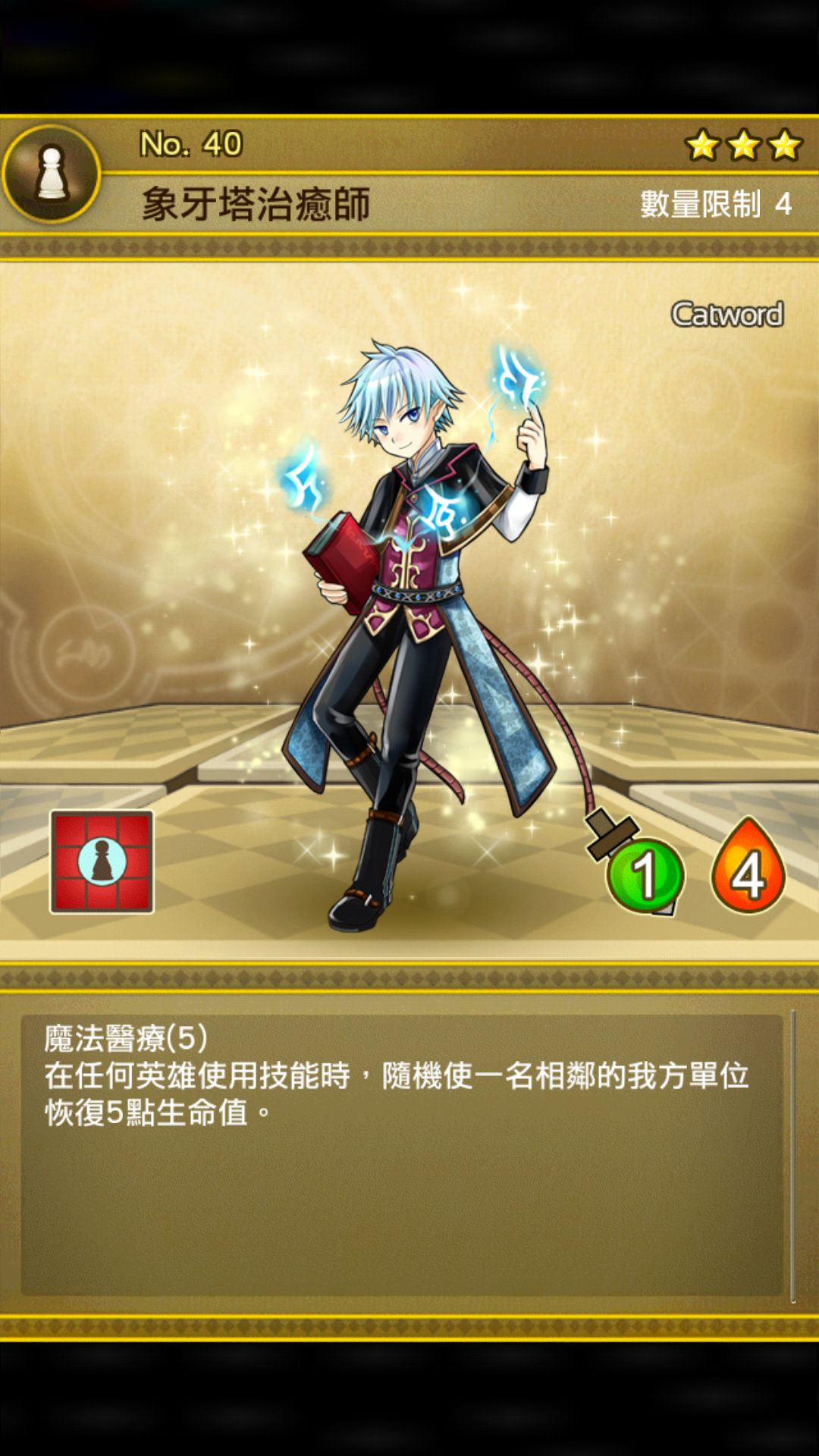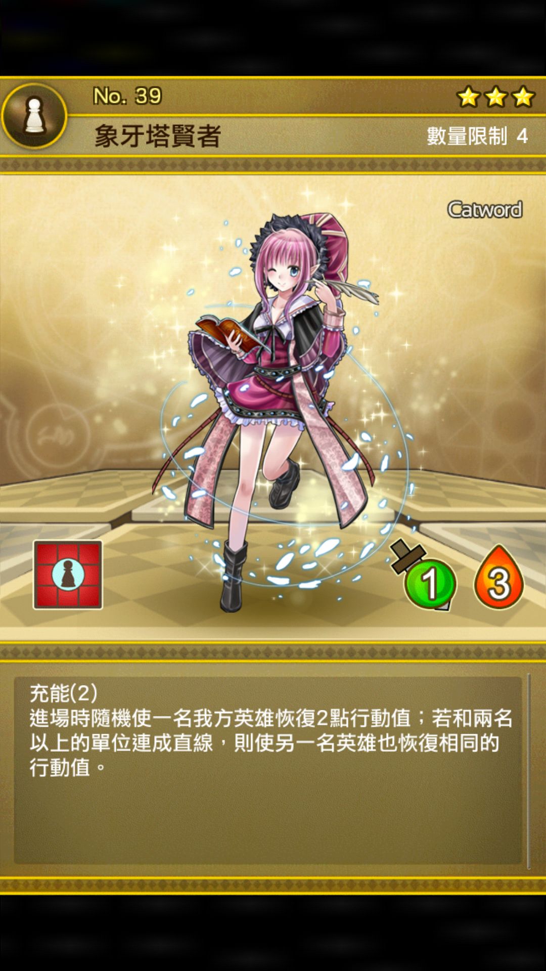 迅速补充英雄行动值,前期过图不需要技能,意识不到贤者重要性,但贤者也许是上场率最高的主线棋子,以后当你过图需要放技能,不要犹豫,抓起电话就订购吧 (雾)