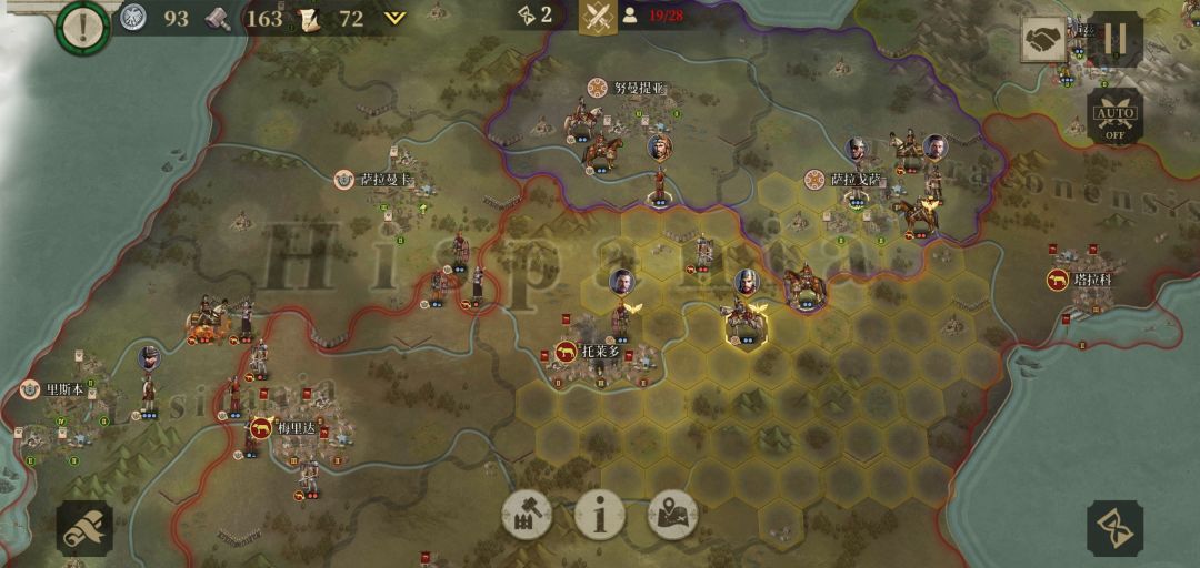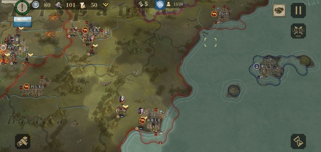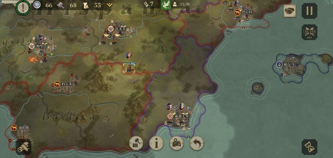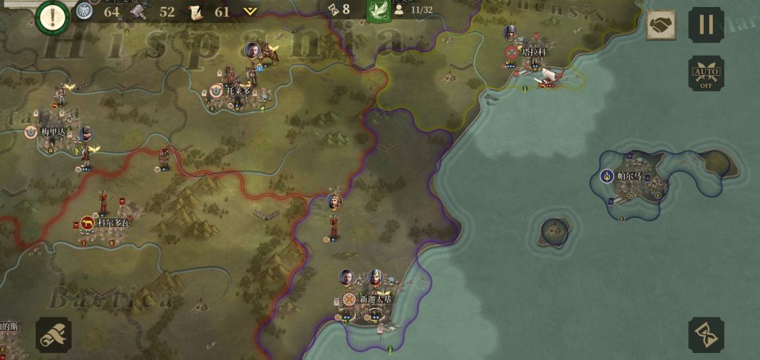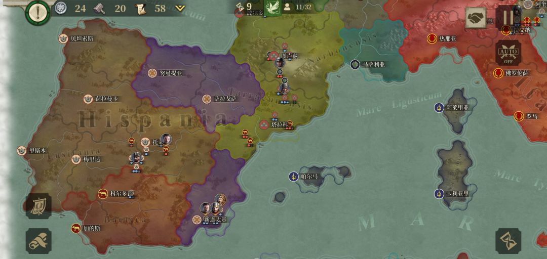 第七回合事实证明没分城区的城庞培不要或托莱多被占了要去救急。系统提示努米底亚参战,外交:先升级新迦太基,拉一次80伊利里亚爆破随意,因为塔拉科爆破过队友根本拿不下。米弓下新迦太基准备补兵