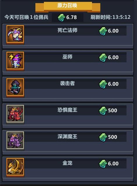 原力召唤每日都会刷新佣兵兑换列表,需要消耗原力碎片进行召唤,原力碎片可通过解雇佣兵获得,在招募或冒险模式下多余的佣兵可通过解雇获得原力碎片。