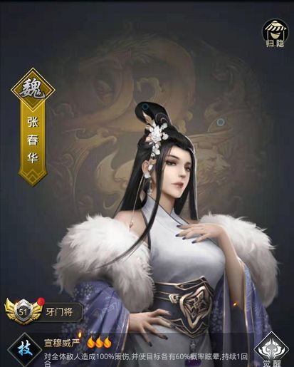 张春华—觉醒(将领五星激活):每回合提升我方全体7%伤害输出,最多叠加5次