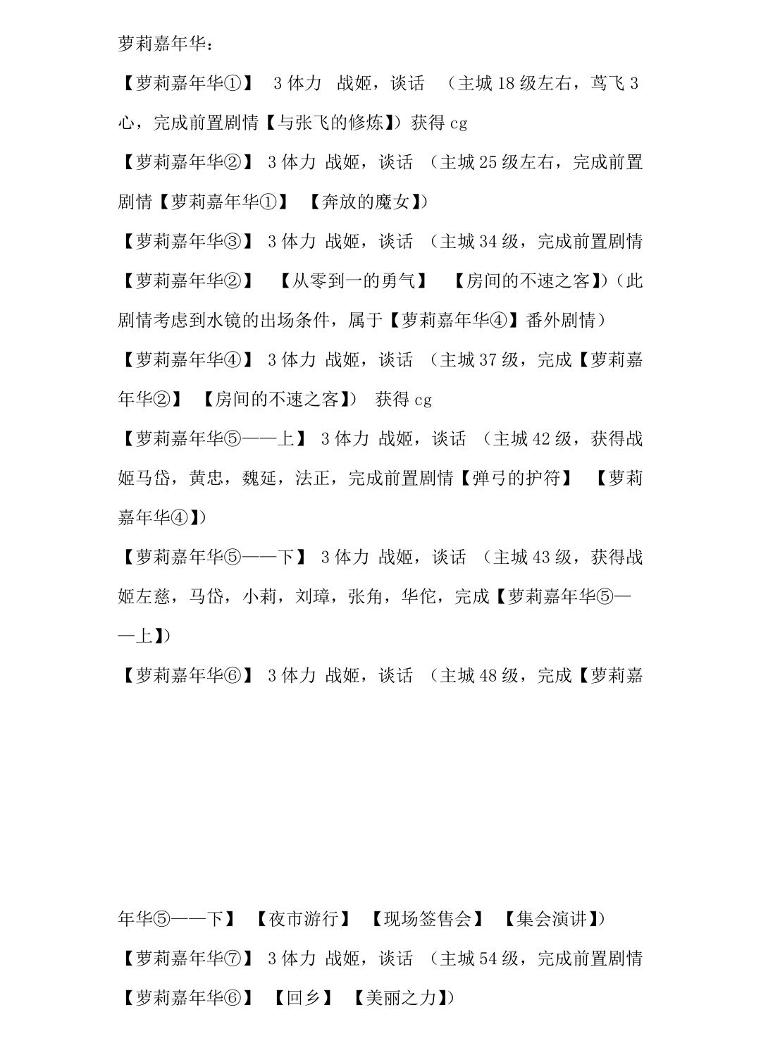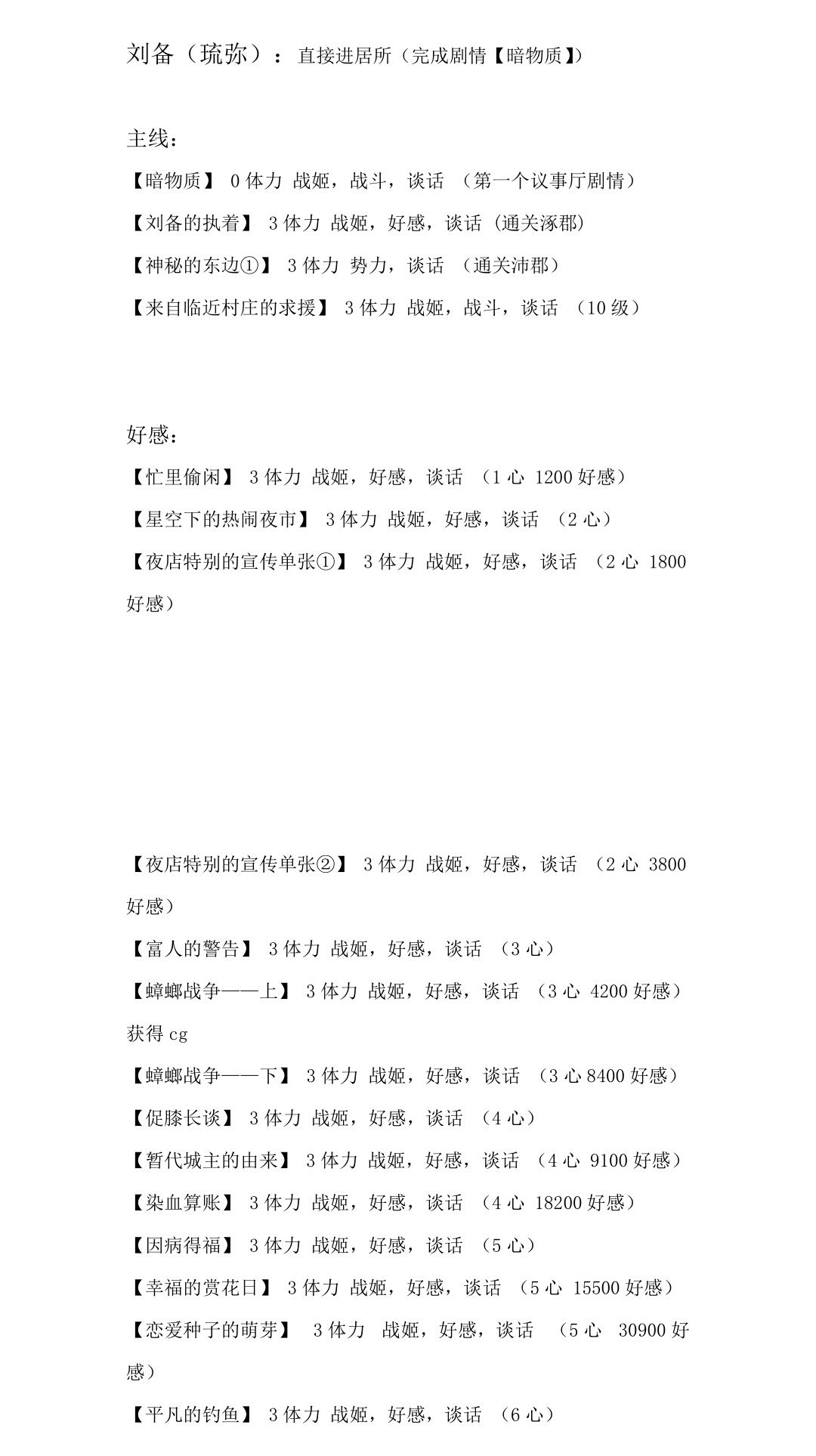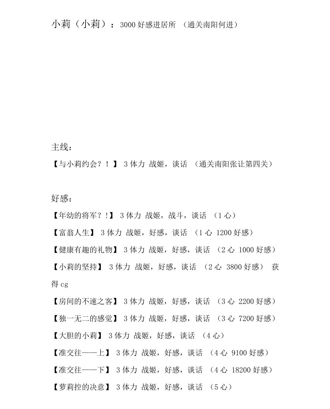 下面简要说明不同的剧情(主要包括获取战姬的主线和副线还有好感剧情,联动剧情存在一定误差,仅供参考)需要哪些条件。