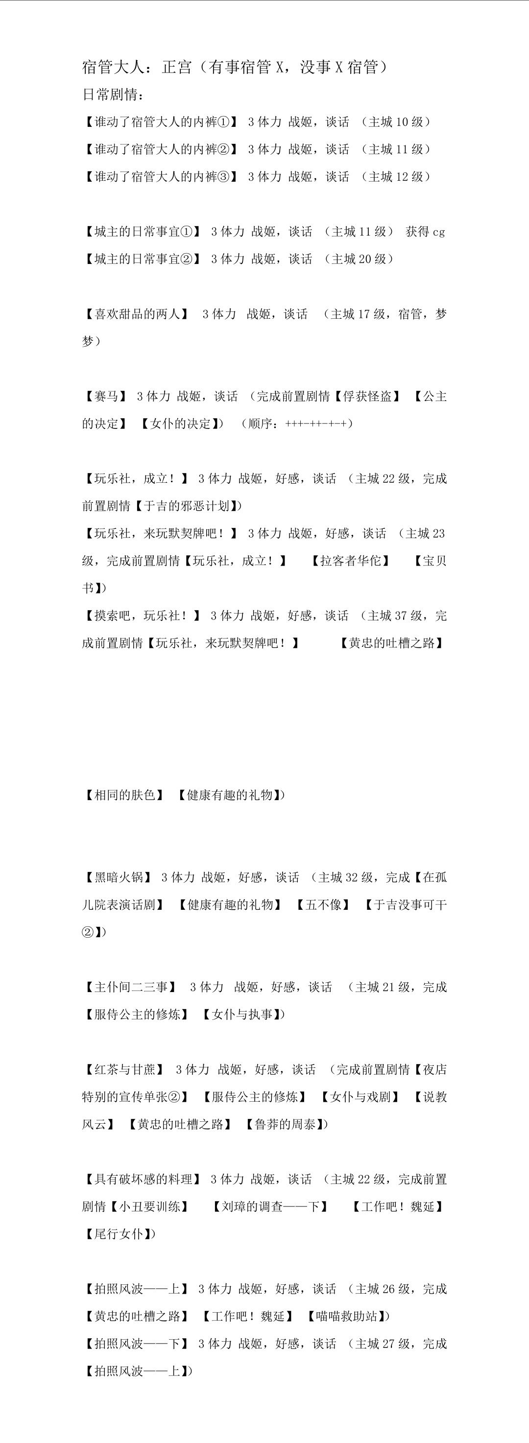 联动剧情!!!(大多数按照第一个剧情的等级排序,联动剧情要保证出场人物全进了居所才能触发)