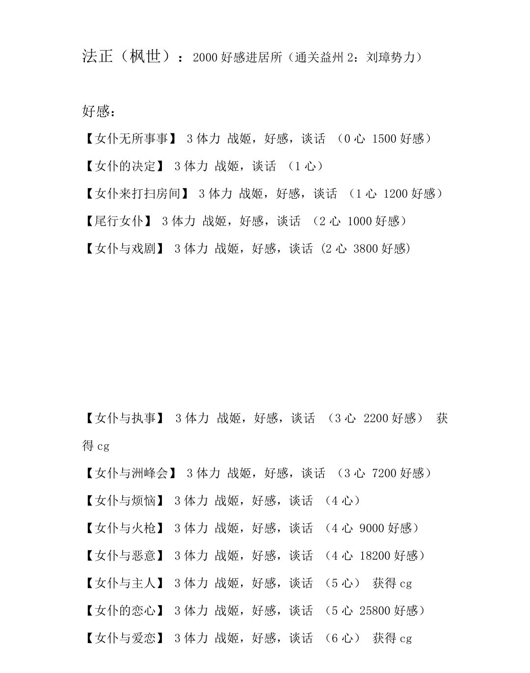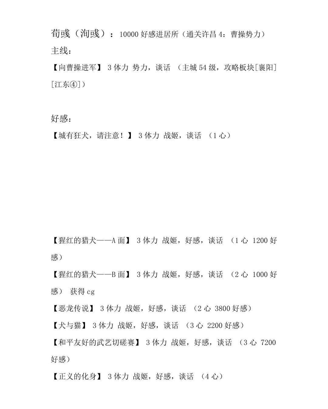 战姬(基)好感剧情: