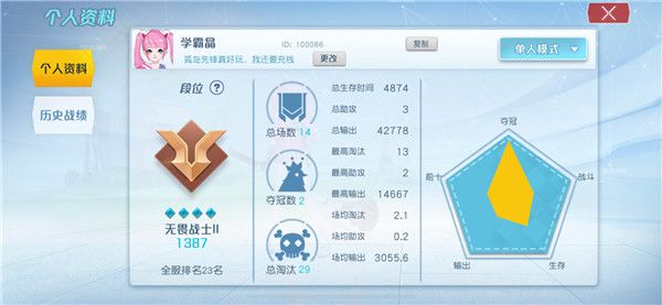 2,根据玩家在每场比赛中的排名和击杀情况,会在每场比赛的结算时获得对应的积分。排名越靠前或杀人越多,获得的天梯积分都会越多