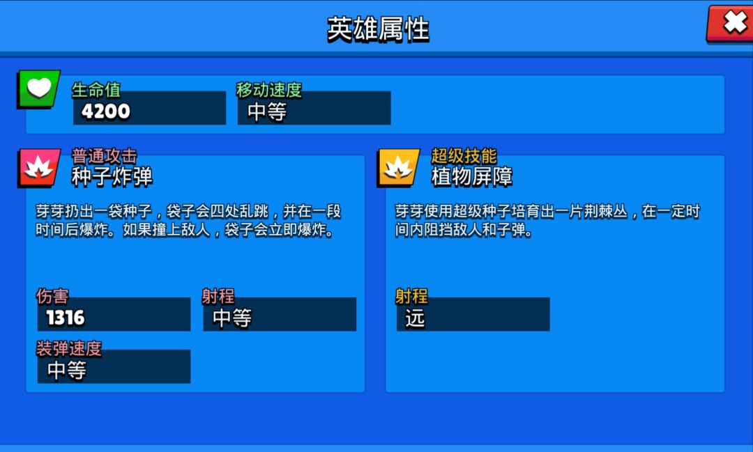 芽芽是荒野乱斗中刚出场不久的英雄,其类型是投掷,也是目前所有投掷中稀有度等级最高的一个英雄。其刚出场时的强度是令人汗颜的,很多玩家都很轻松的打到了红牌 (1000杯)。当时没有做这个攻略,主要是觉得它的平衡性还不稳定,后面会有所调整,现在稳定了,所以我们来为大家详细的分析一下芽芽的各项数据。