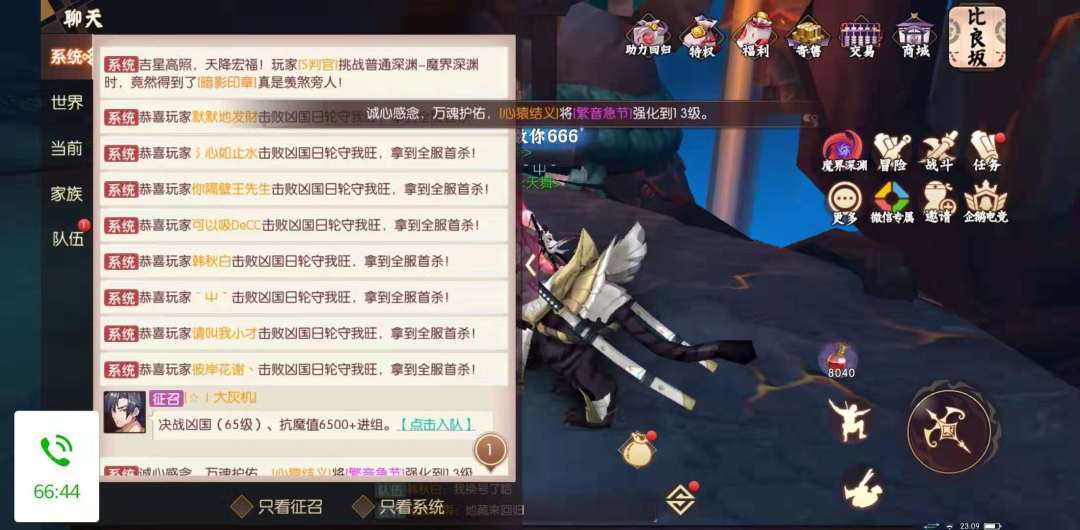 主要奶妈装备实在太差,,而且是让家族其他成员开的我的神乐,操作也不熟练,但是看视频可以看出来奶妈还是很强的,加血量也很足。希望再玩神乐的武者千万别放弃,我旺真的需要奶妈,在最后阶段会轻松很多。失败后我们开始调整配置,神乐下队,换巫祝,然后下午家族又一个居合凑齐了65四件套。就这样开始全队最后提升一下属性,首先集体换属性珠子,队伍7个人统一炎珠子和冷珠子,巫祝是风珠子,而且队伍里只有他一个法所以也不用换属性珠。集体提升了一下星仪和时装宝石,星仪提升真的很大。