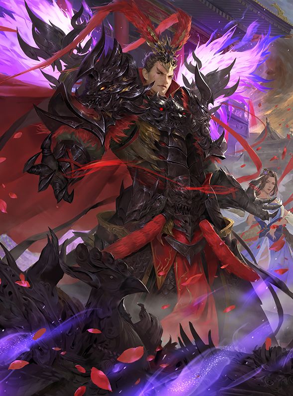 宁我负人,毋人负我 。作为乱世中的杀戮决绝的枭雄,曹操在游戏中也是首当其冲的骑兵代表。在立绘中,画师选择用红与黑的强烈对比来描绘这一位乱世枭雄的形象。红色的热烈和黑色的决绝,和曹操本人的性格似乎也比较契合。背景的红月和周边的黑色大雁,也将人物附上了一层时代的厚重感。