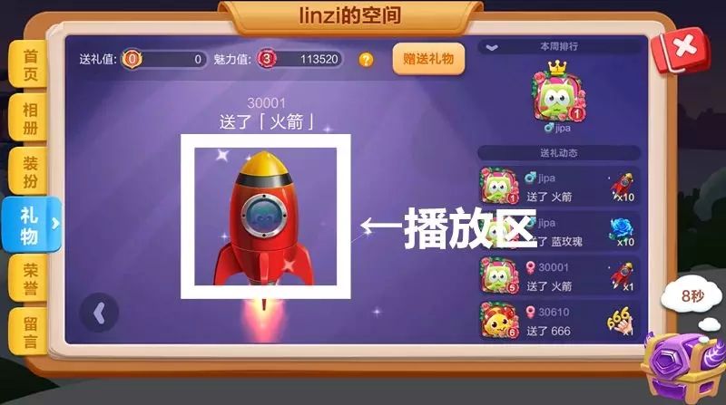 i. 当蛇宝们收到礼物时,在个人空间的上方会以滚条的形式展示出来哦~
