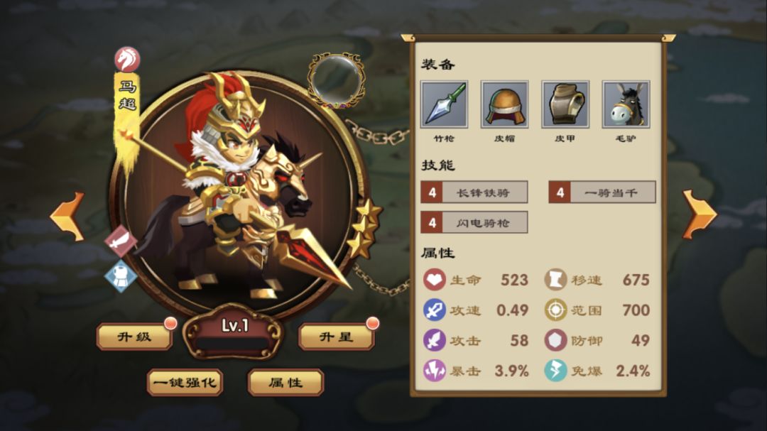 武将的成长方式有:升星,升级,和装备3种。