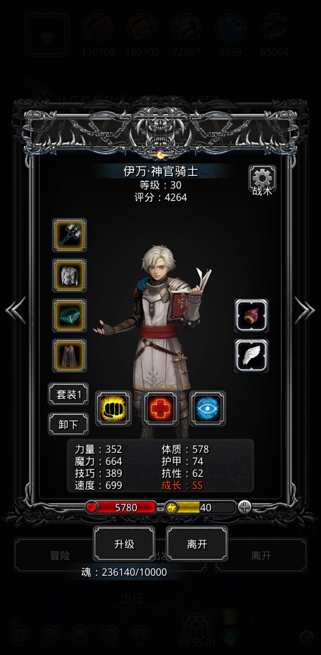 打法:开局先发祭祀奶一口,然后挂机,祭祀加的抗性已经能抵消减抗,神罚减抗能打的很快,小怪死了就手动骑士加祭祀和自己就行(祭祀>骑士)