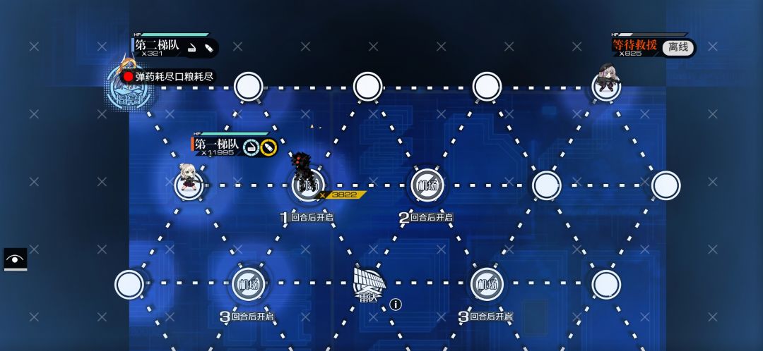 第一回合,打捞队向右下移动1格,指挥部部署狗粮队。