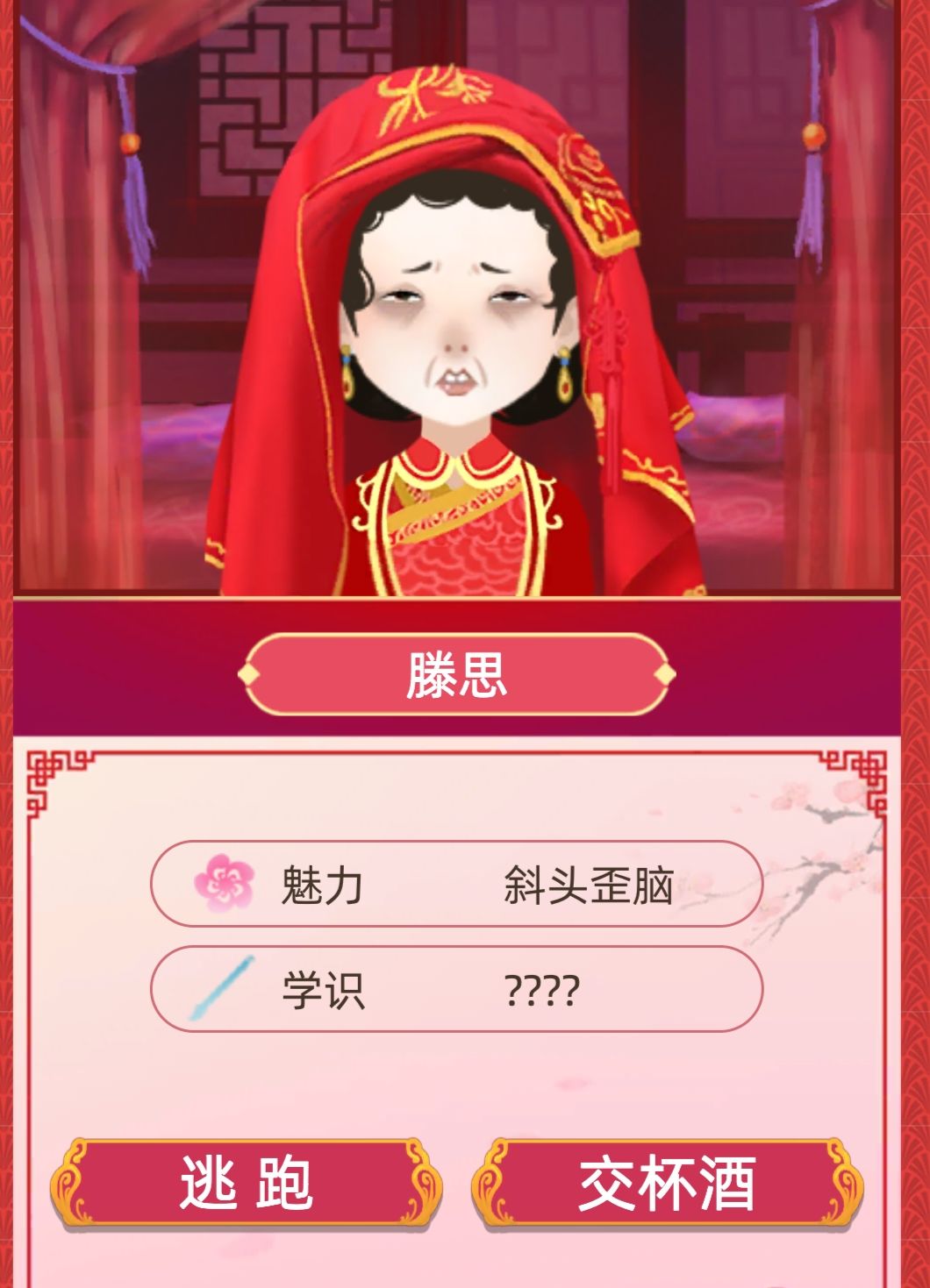 到了一定年龄会随机进行父母选女婿,你只需要答应就好了。运气好的话就是下面这种,如果运气不好话就是第二种啦。