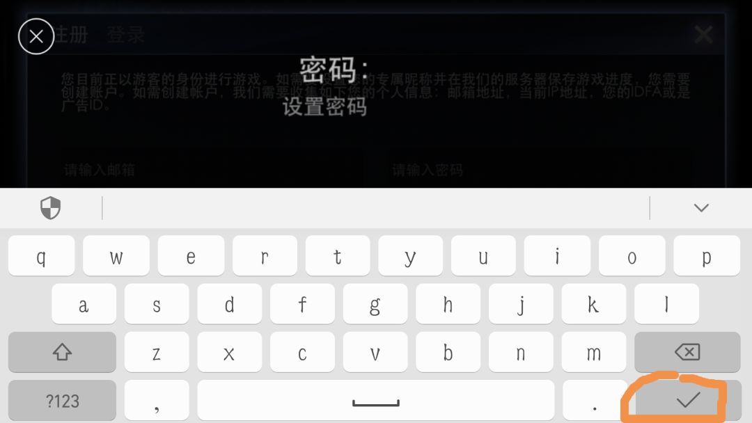 注册的时候输入完帐号密码后,不要点手机上的返回键,一定要点输入法键盘上的回车键或者√