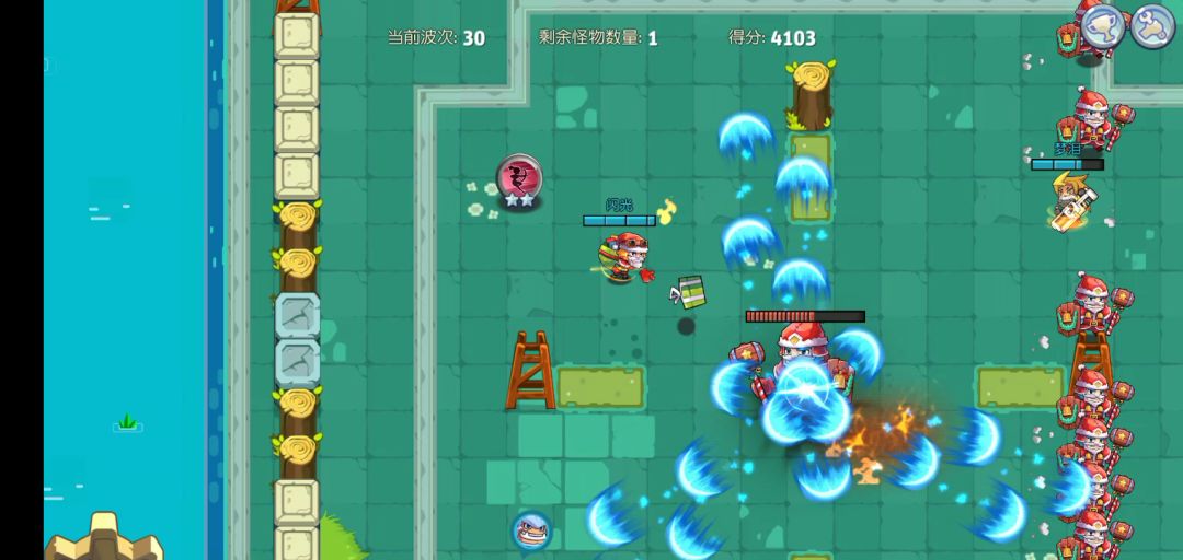 圣诞铁锤:难点在于冲击波会折返,与召唤的一排小兵同时攻击玩家时会较难走位(建议花花大招)