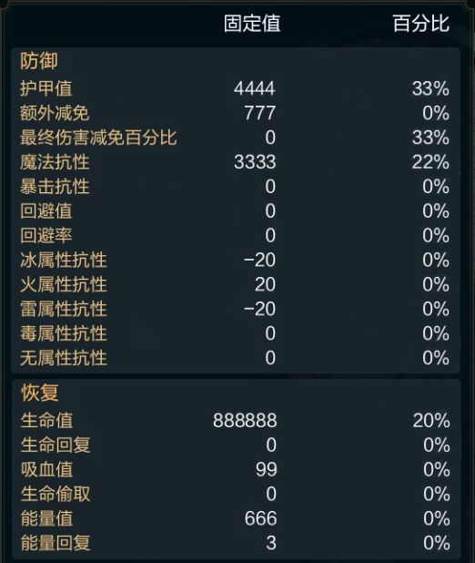 英雄的血量,当生命值降到0时就会死亡,在无限深渊/公会资源战等玩法则意味着挑战失败。在属性面板里,目前生命值中的固定值与百分比是独立显示,进入副本后才会综合起来。