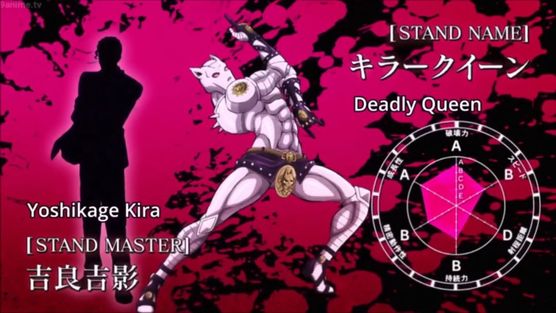 替身能力:可附身在人体上,若被附身的人告诉其他人本体(吉良吉影)的任何信息,甚至是名字,都会被立刻引爆炸弹炸死得知消息的人;接着时间将回溯一小时,之前爆炸的人到了同一时间时仍会爆炸,除非本体(吉良吉影)解除替身能力