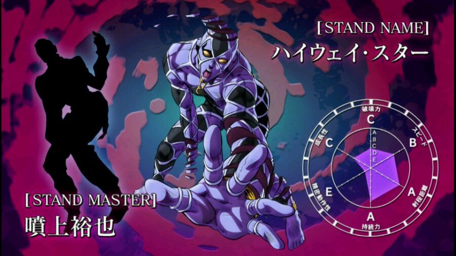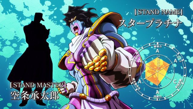 替身能力:拥有超高精准度和速度;特殊能力可以暂停时间,巅峰可时停五秒(在最后与dio一战中学会)
