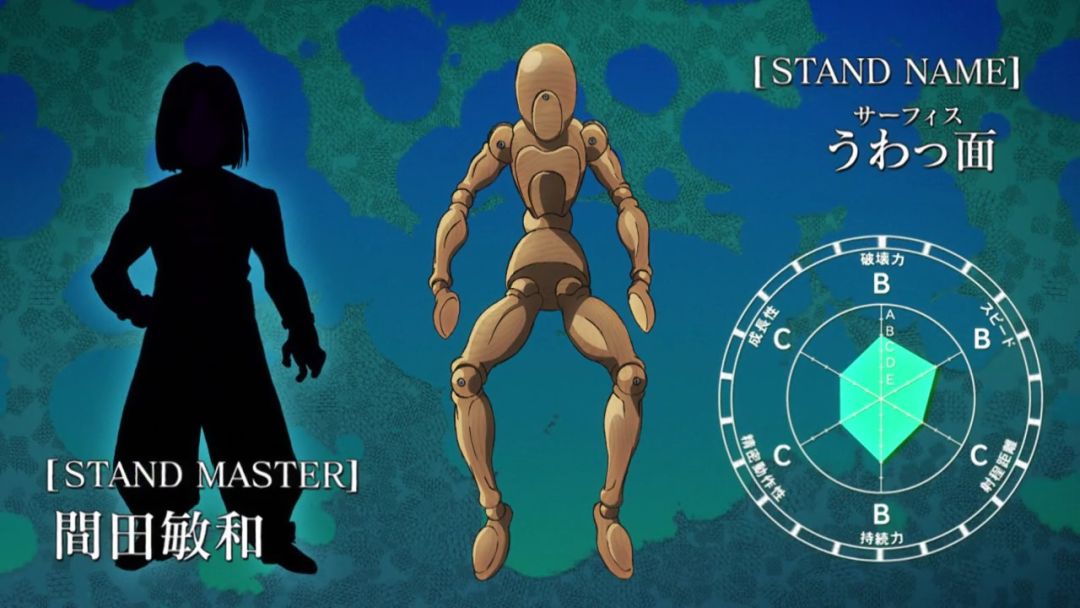 替身能力:拥有独立自我意识,可附着在人的背后,被其他人看到背后会附身到看到的人上,而原来被附身的人会被吸取养分至干竭而亡