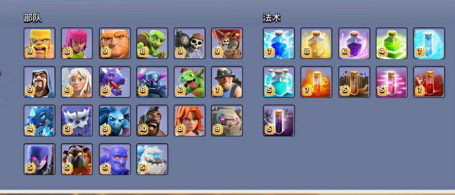 部落冲突所有法术和兵种暂时都在这里了