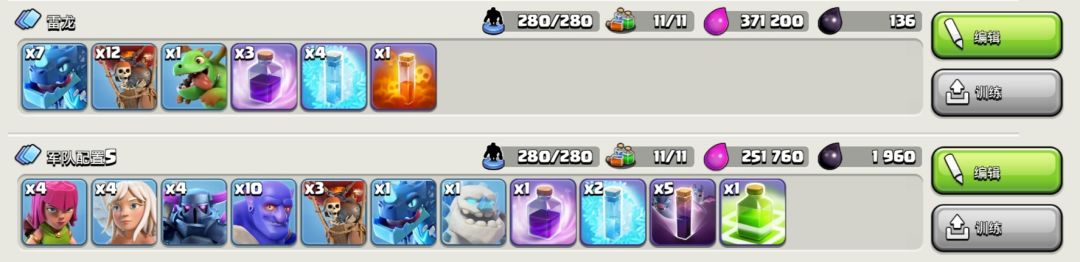 雷龙流,攻城要大气球,援兵雷龙➕气球或者全气球,法术要狂暴,当然要配合着永王使用才能威力巨大