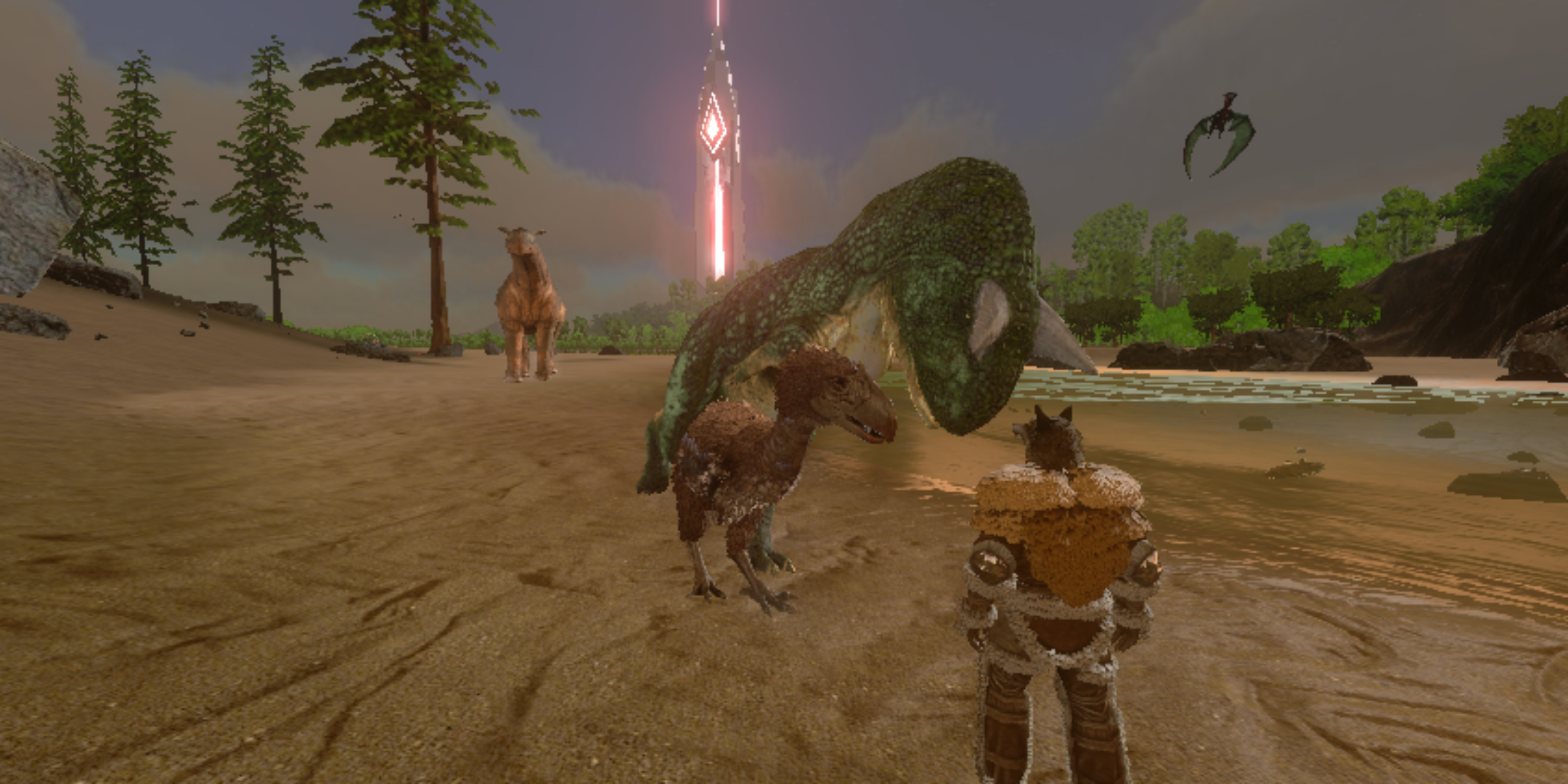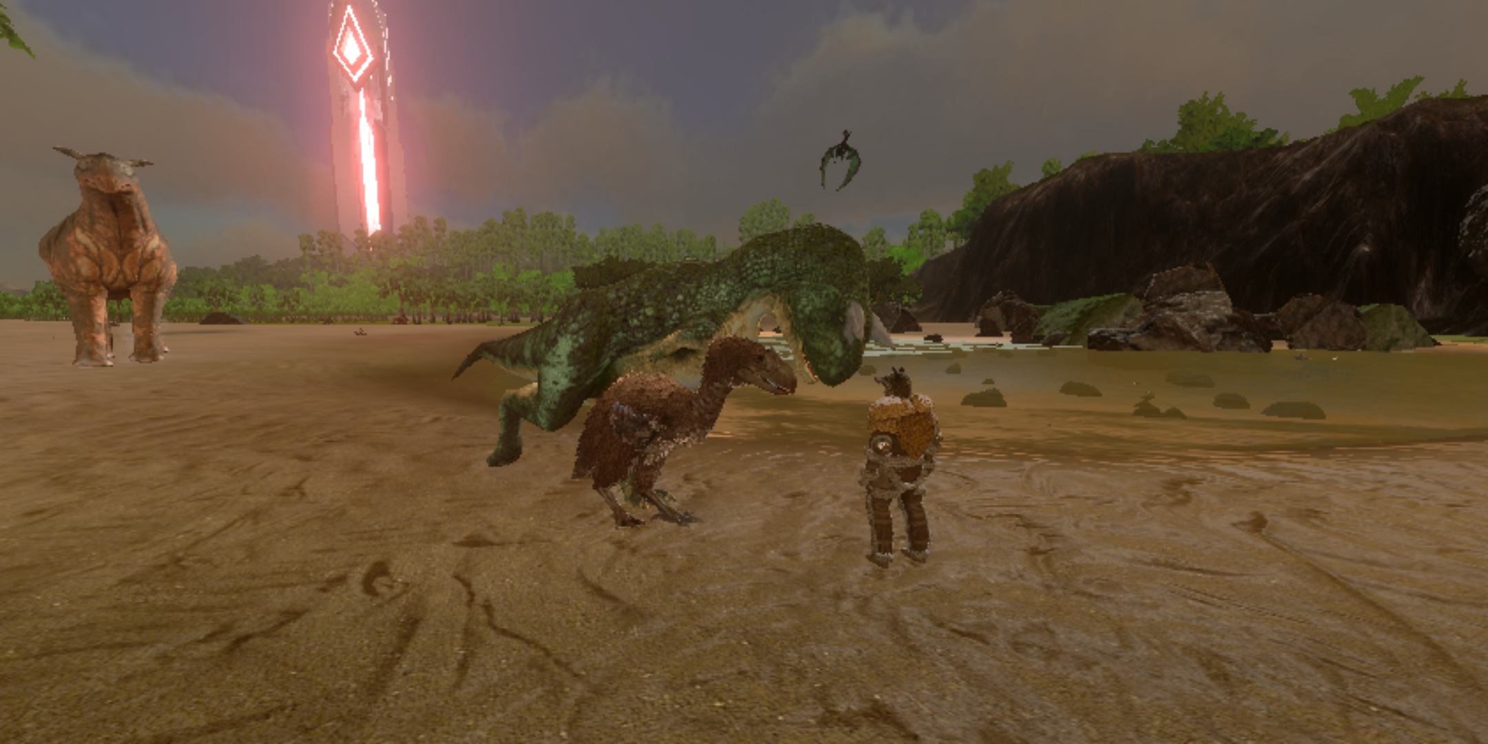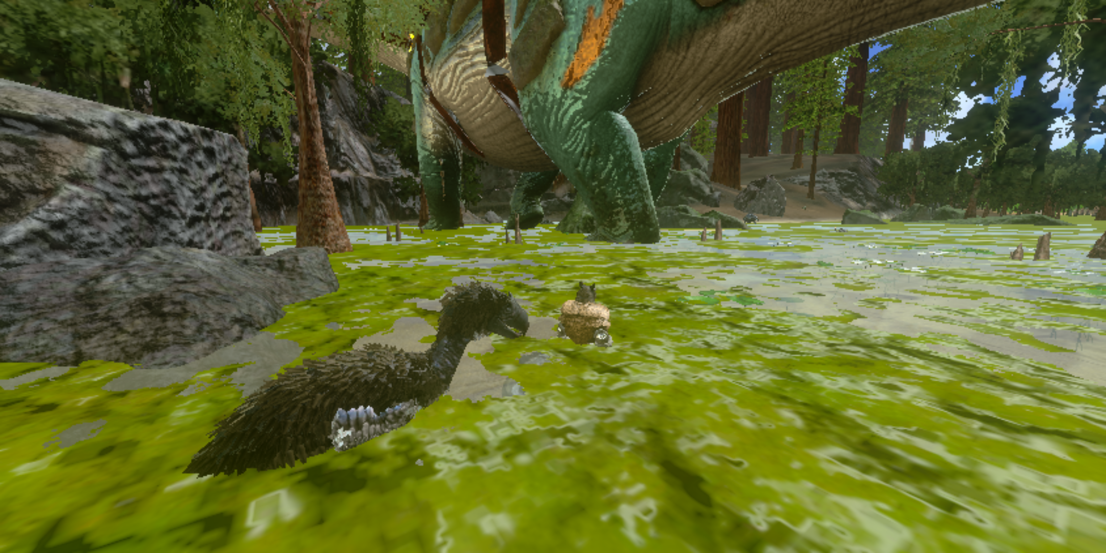 也是够了,都追到我泰坦龙脚底下了,没办法只能上泰坦龙身上去了,骸鸟立马被踩死😂😂。