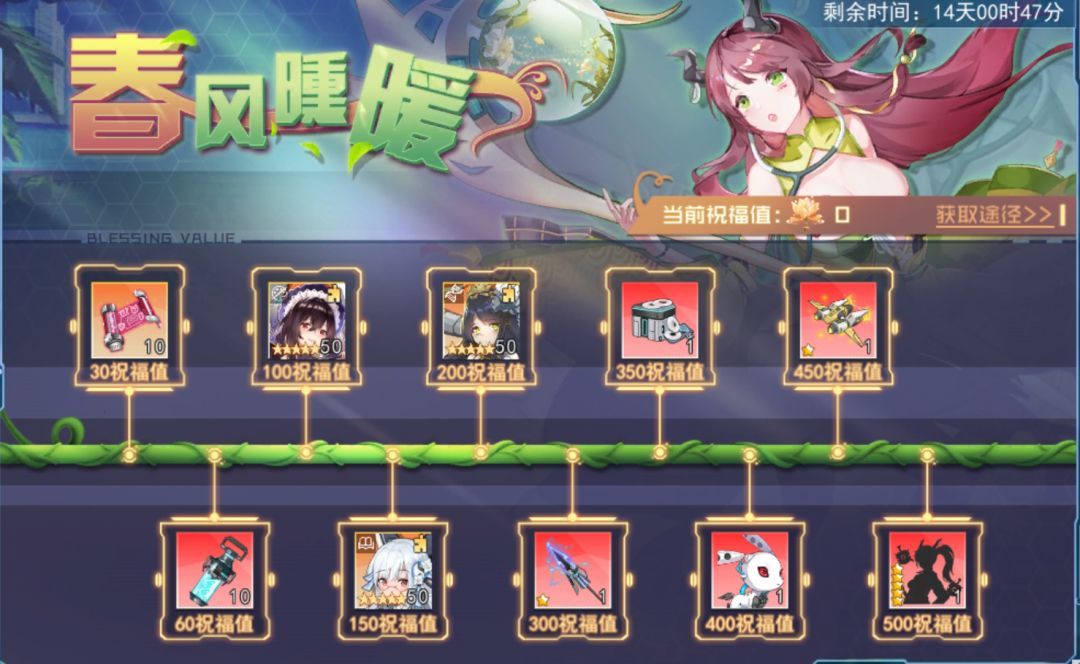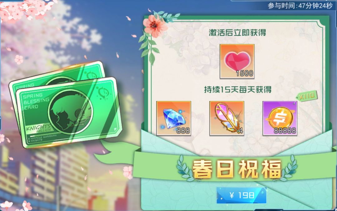3)许愿礼包:活动期间,购买礼包可获得超级基因、钻石、高级许愿币、普通许愿币及春日的祝福;