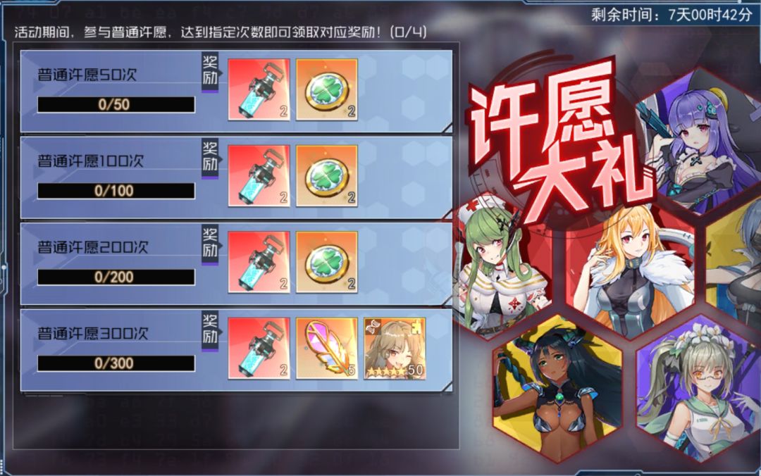 7)累计充值:活动期间,累积充值达到一定金额便可获得相应奖励,普通许愿币、高级构建图谱、超级英雄基因体,最高可获得6星英雄素体,助力强势英雄直通十星不是梦。