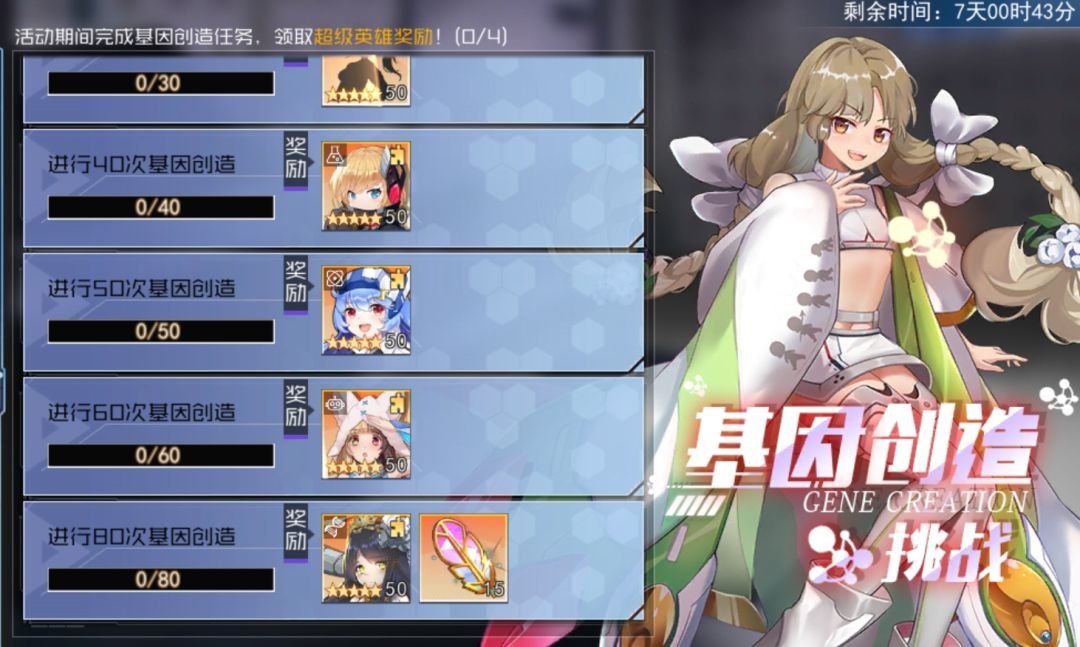 5)超级基因任务:活动期间,完成基因任务,进行80次超级基因召唤,可获得新英雄-姬轩辕,循环4轮;