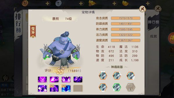 本身带有的高级技能健体与反击,就决定了暴熊的要走的血宝宝路线,对于暴熊的洗炼,玩家们可以不必过于追求其他属性上的峰值,只要能够洗出一只体力与防御资质都为优以上的即可,比起需要巨大投入的攻宝宝来说,还是相当节省资源的。