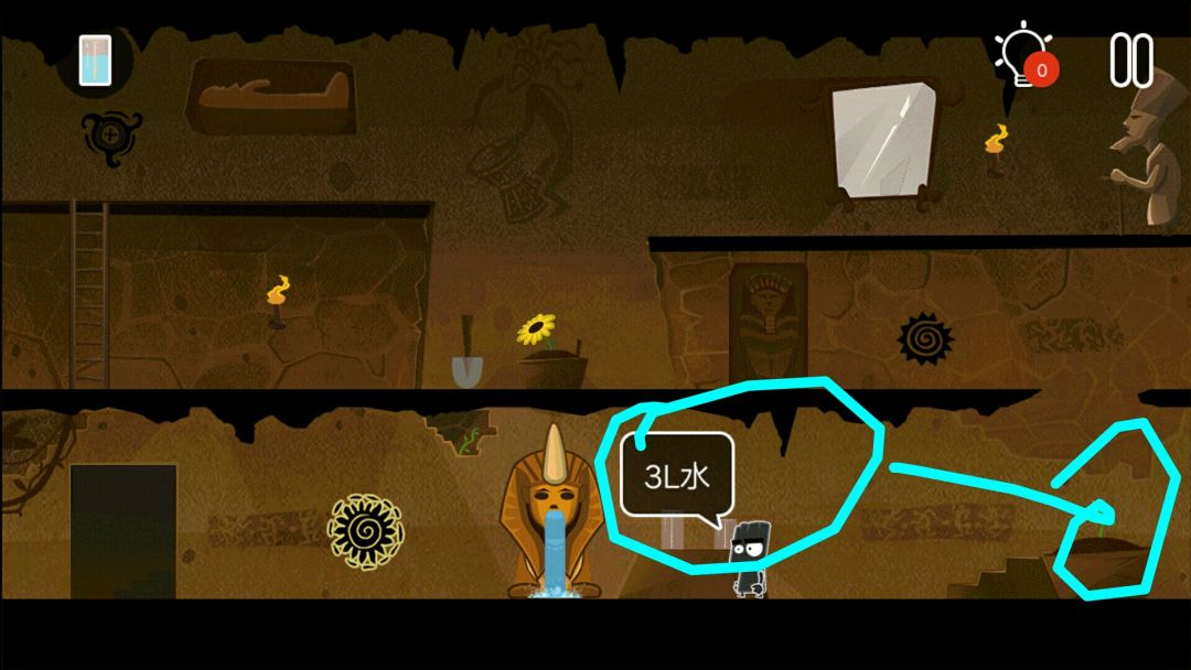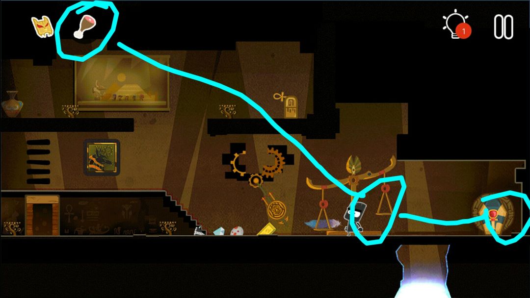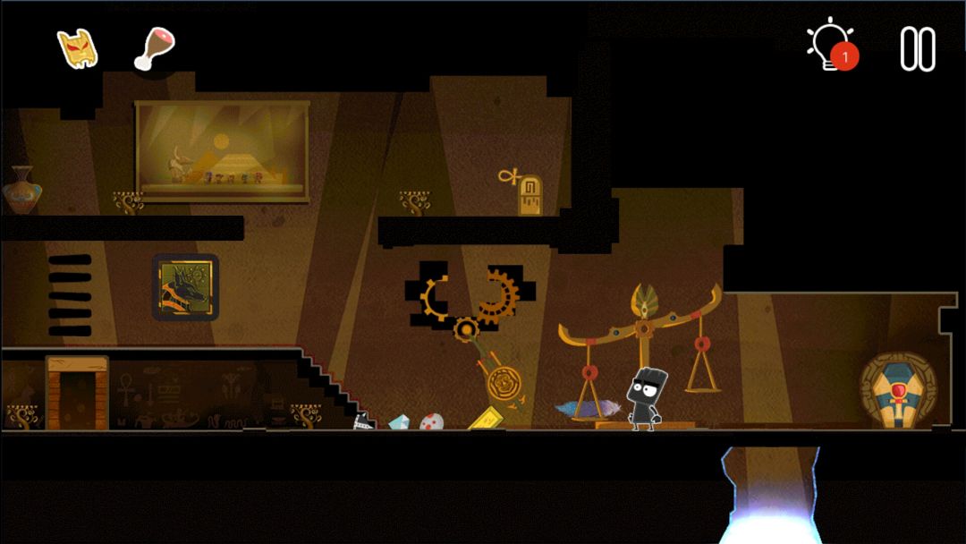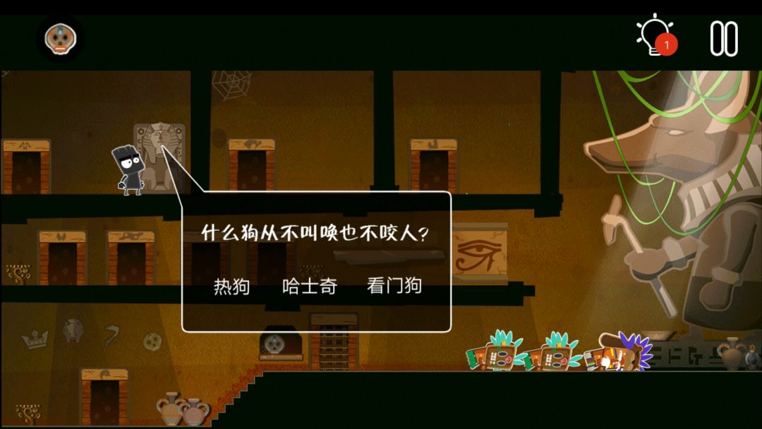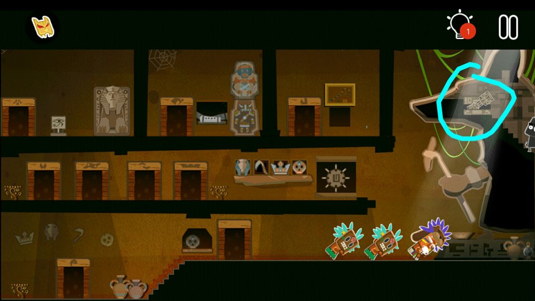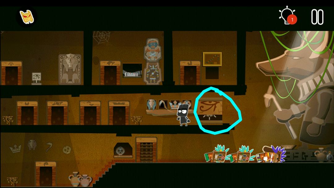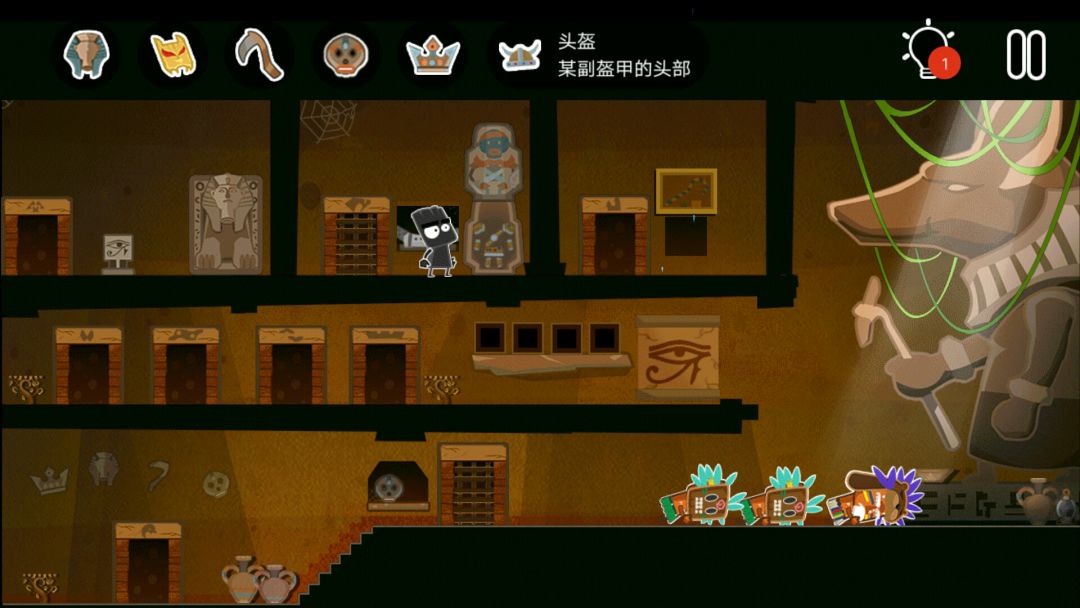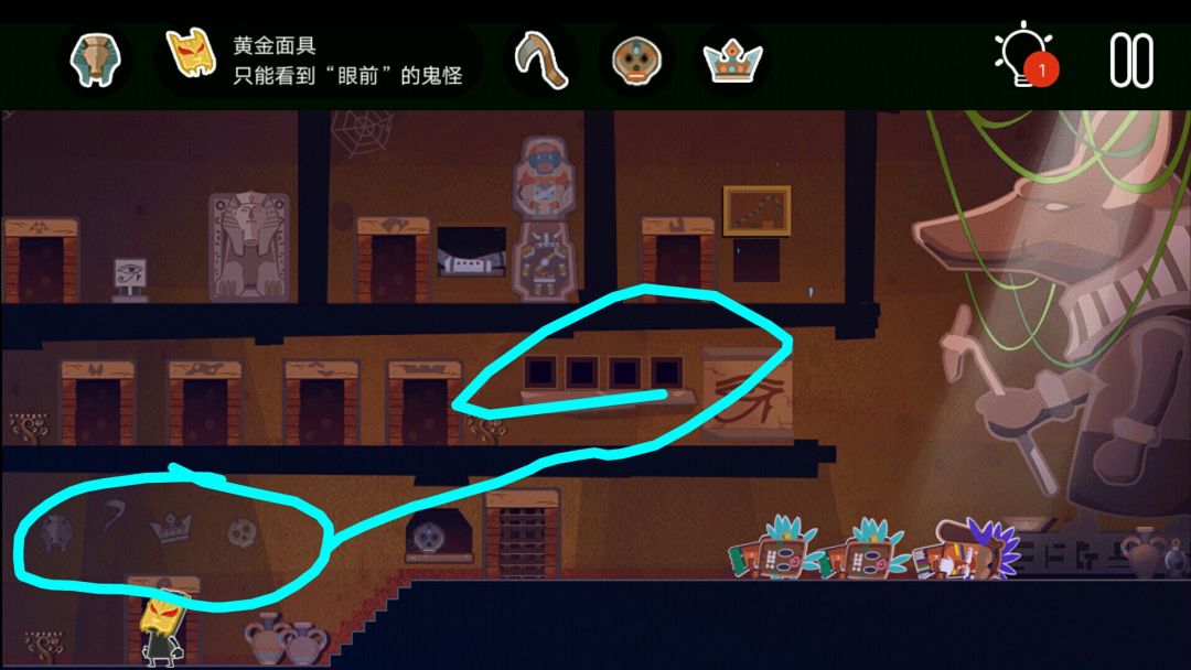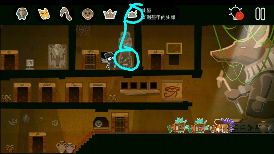 👉掉出一个皇冠👑,一个水晶头,和一个牛角头盔(在小黑背后,木乃伊的左边)