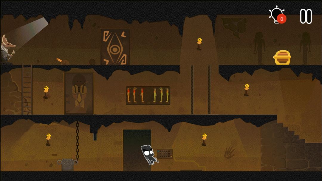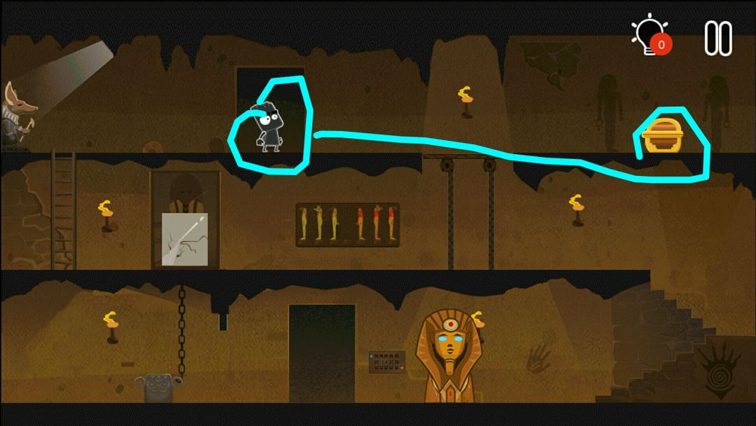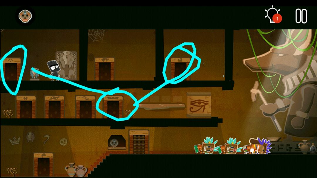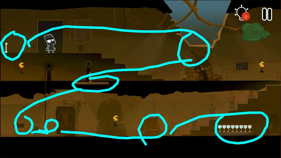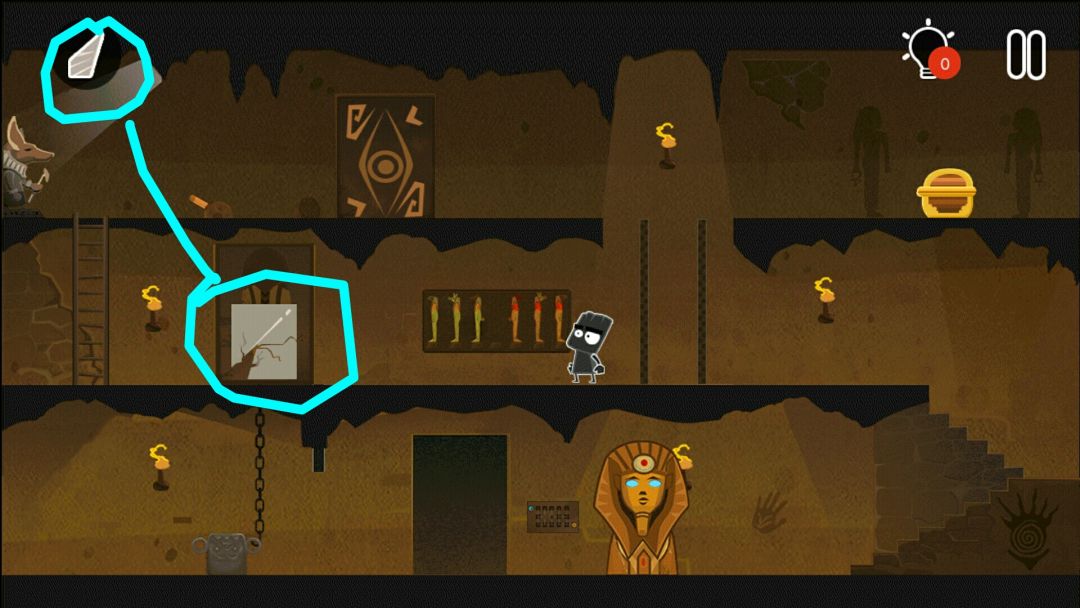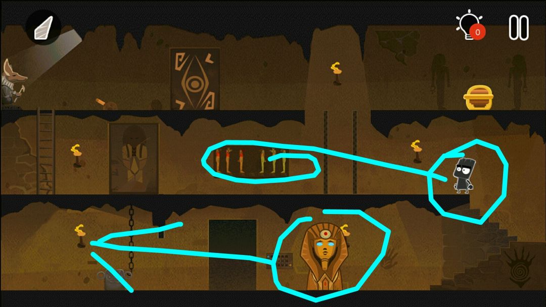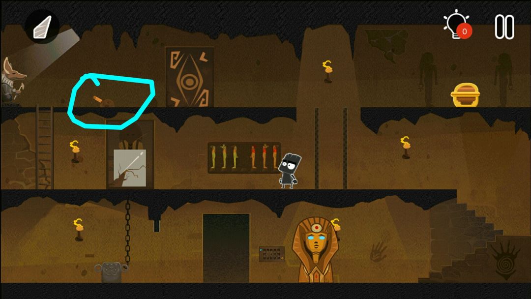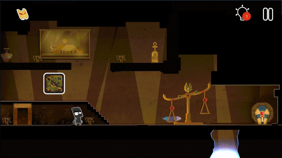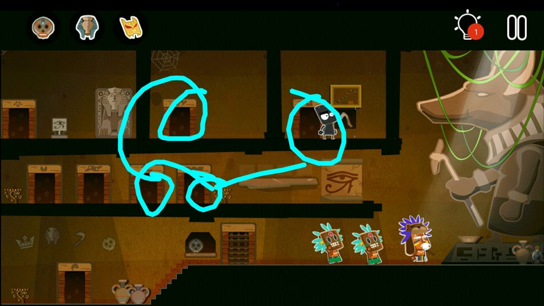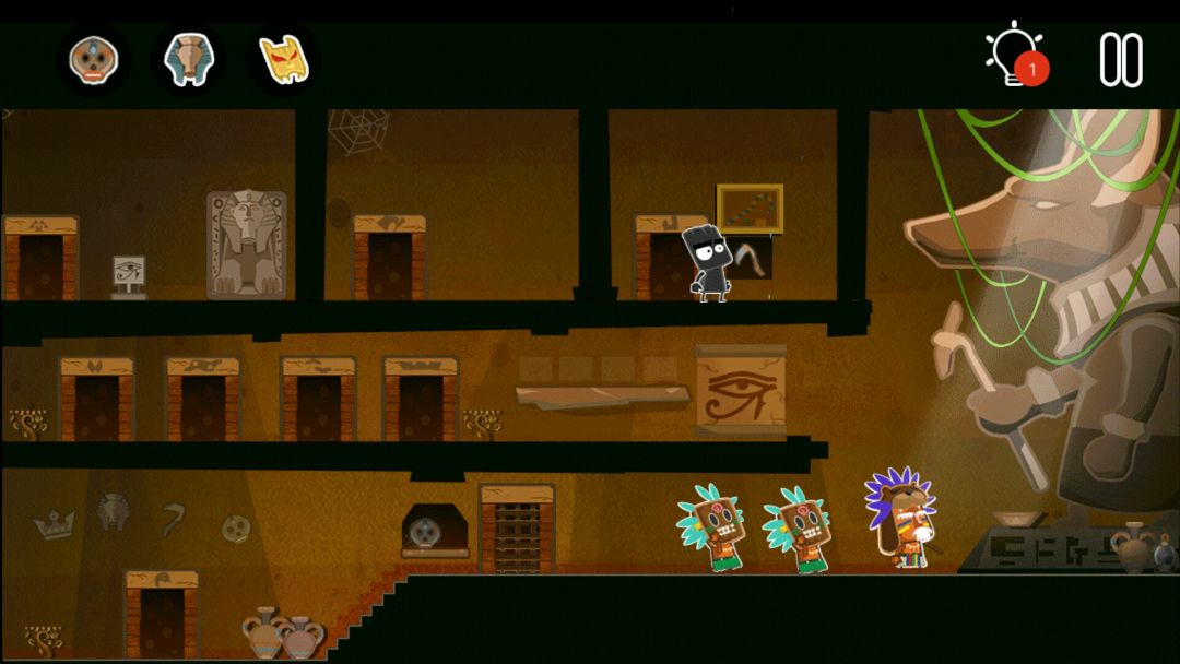👉掉出一个皇冠👑,一个水晶头,和一个牛角头盔(在小黑背后,木乃伊的左边)