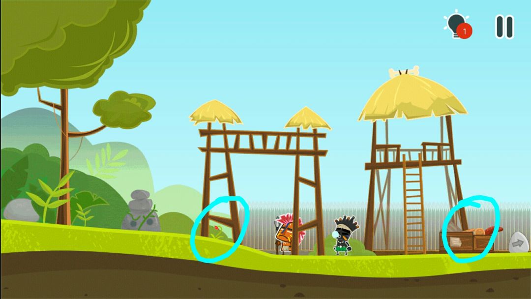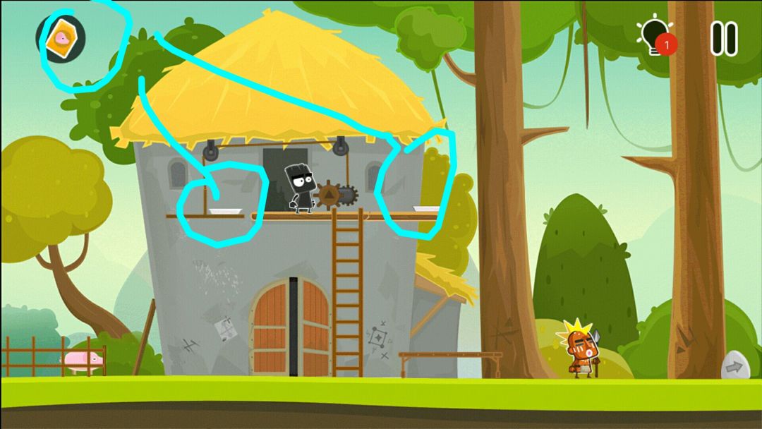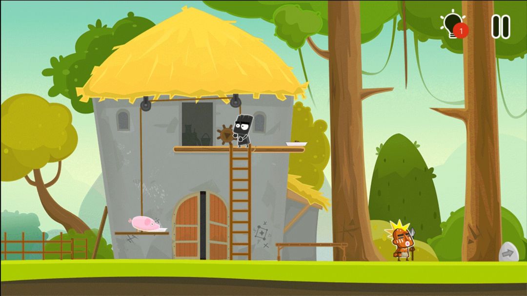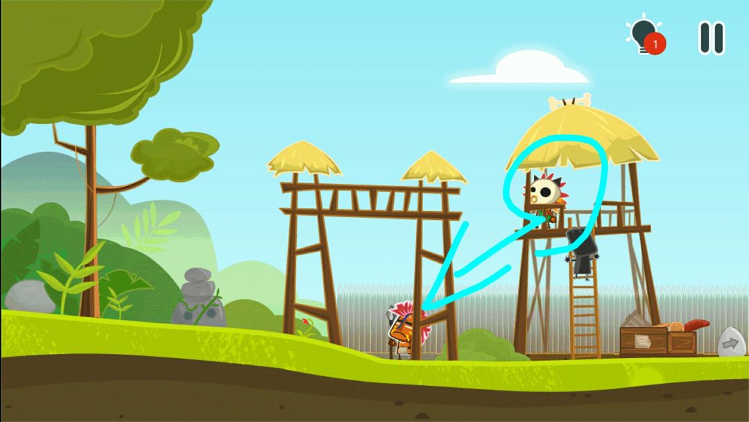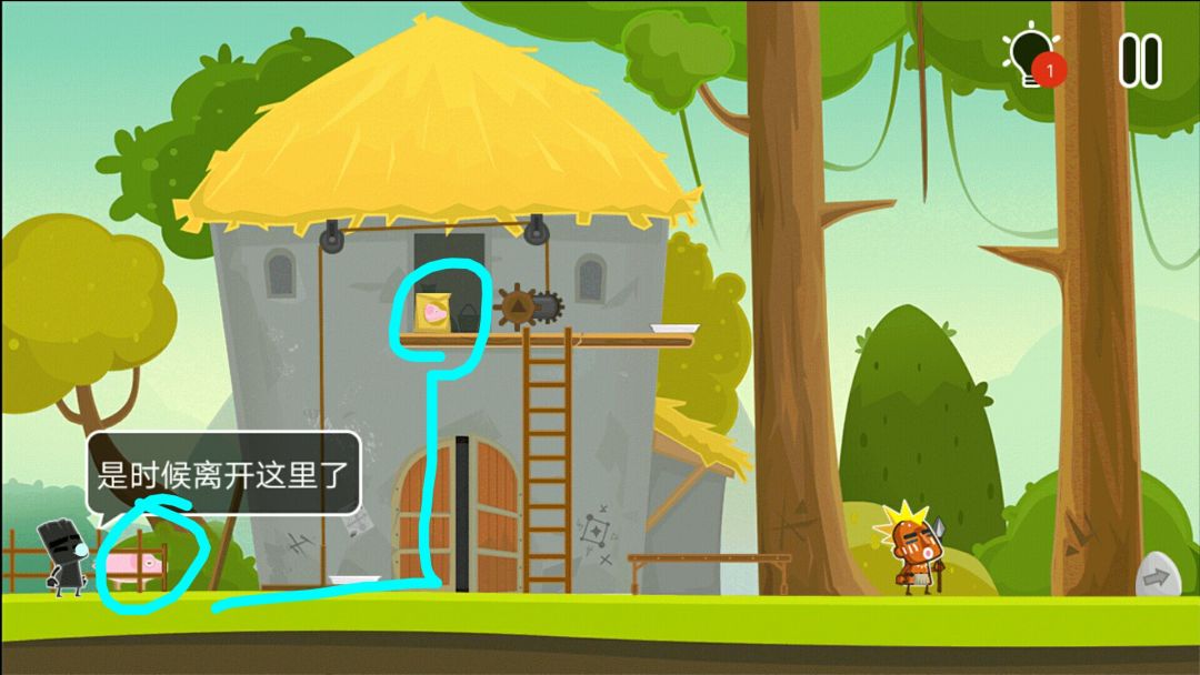 👉当野人侍卫向左看时,上梯子,把他推下去