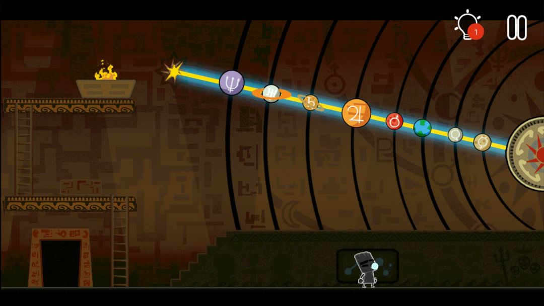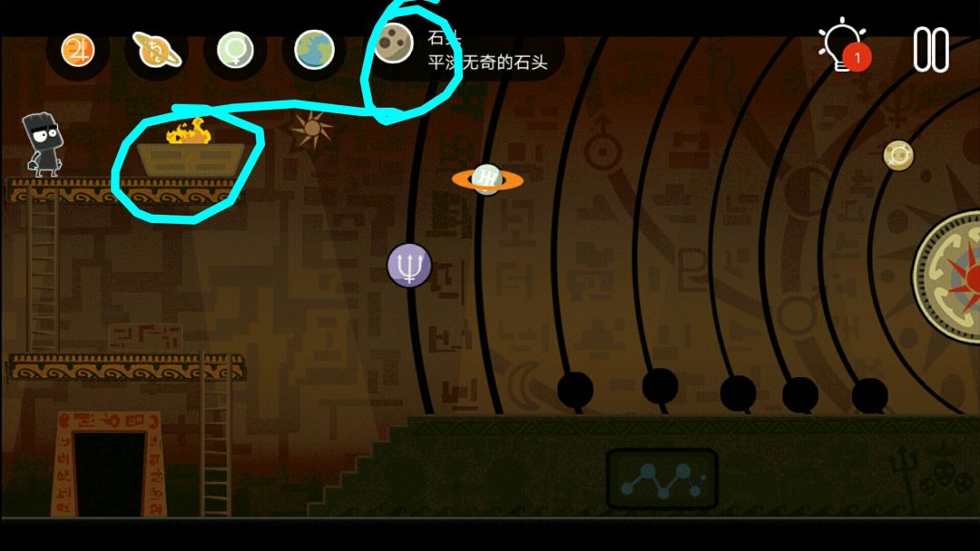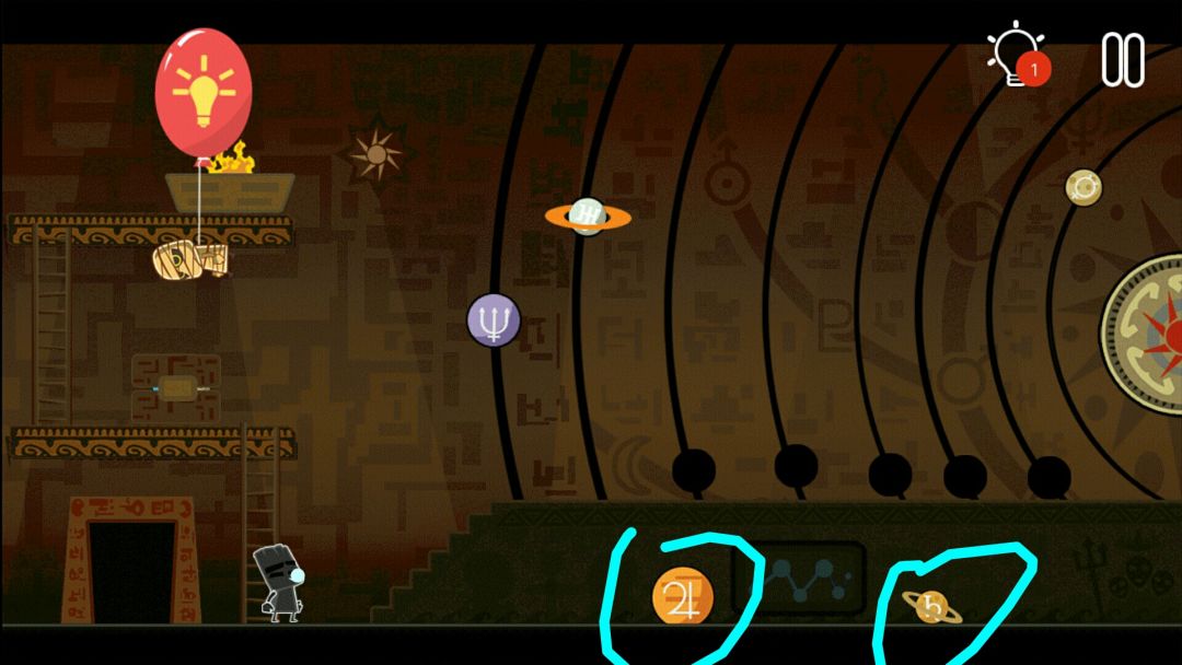 👉去下边,转动每个行星位置,照亮太阳,得到月亮
