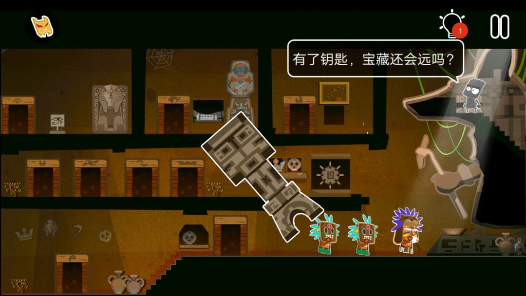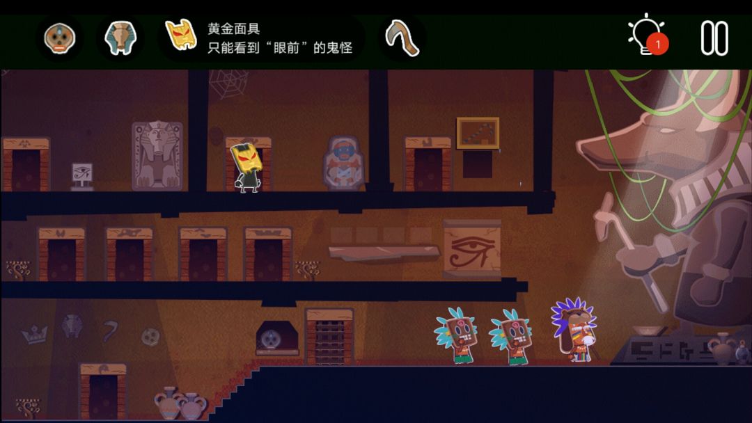👉戴上黄金面具,拼图,得到楼梯台阶