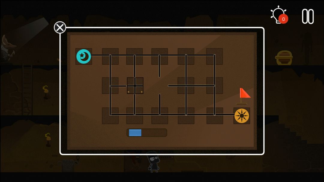 👉小黑上去,按下月亮下边的按钮,中间大门打开,走出去即可