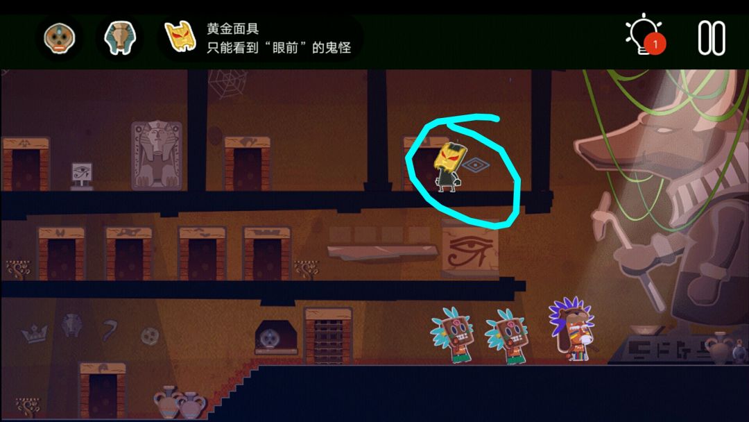 👉回到一层入口处,戴上黄金面具,发现真正的排序