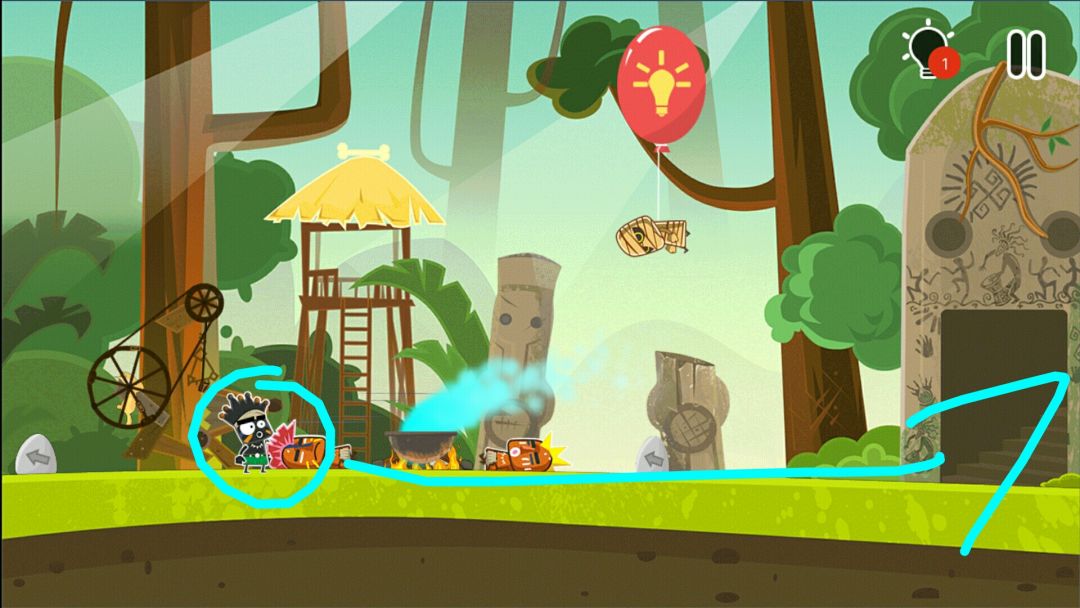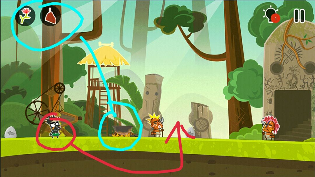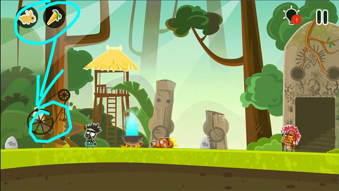 👉捡骨头,骨头把砖头敲下来,砖头放在木板上