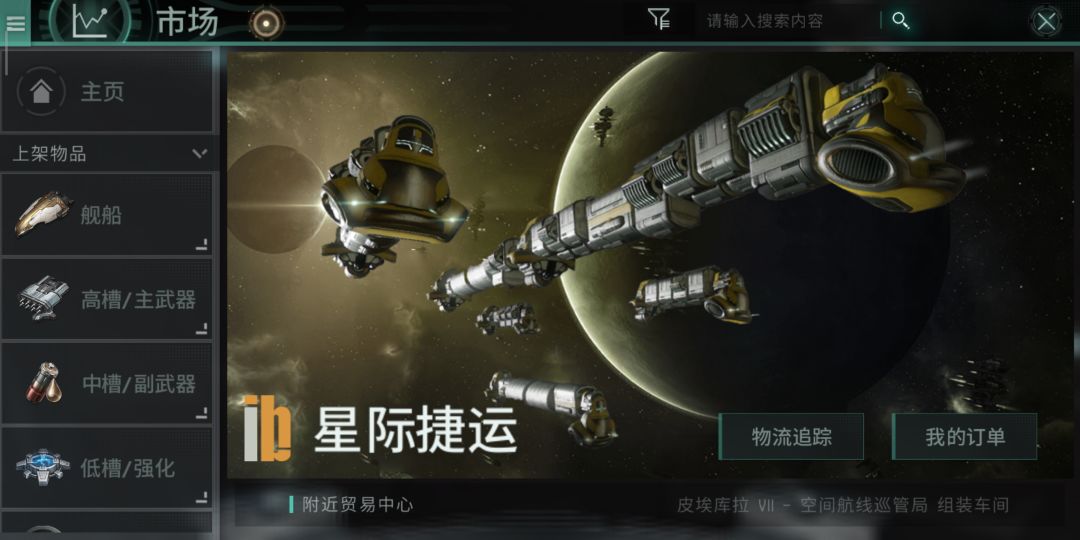 点击市场,看到操作页面最下面的一行字,会为你指明那个贸易空间站离你最近。点击那刚行字,设置为终点,开启自动导航,就能到达离你最近的贸易空间站。