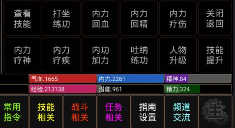 这个快捷机器人是武当向谷虚道人请教内功的(xue guxu force 300),exert regenerate是恢复精神,exert recover是恢复气血。