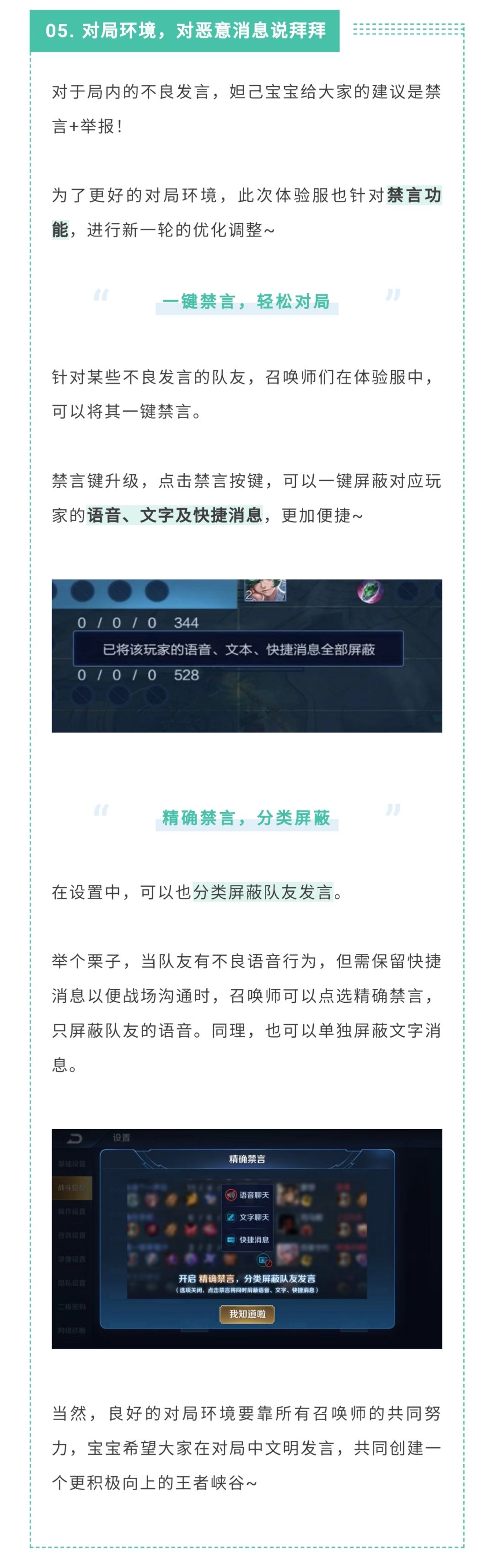 对局环境优化!一键禁言、精确禁言、分类屏蔽 ,对恶意消息说拜拜