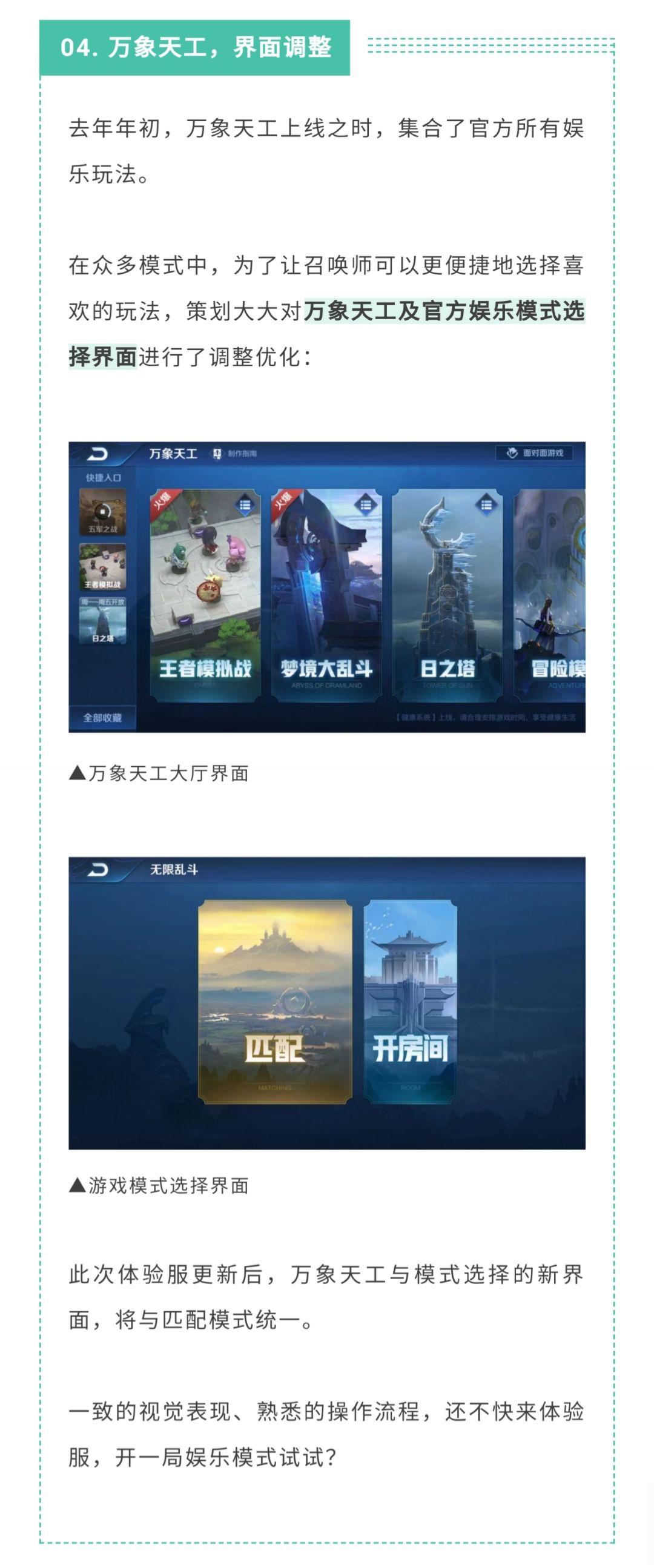万象天工及官方娱乐模式选择界面优化!可以更便捷地选择喜欢的玩法