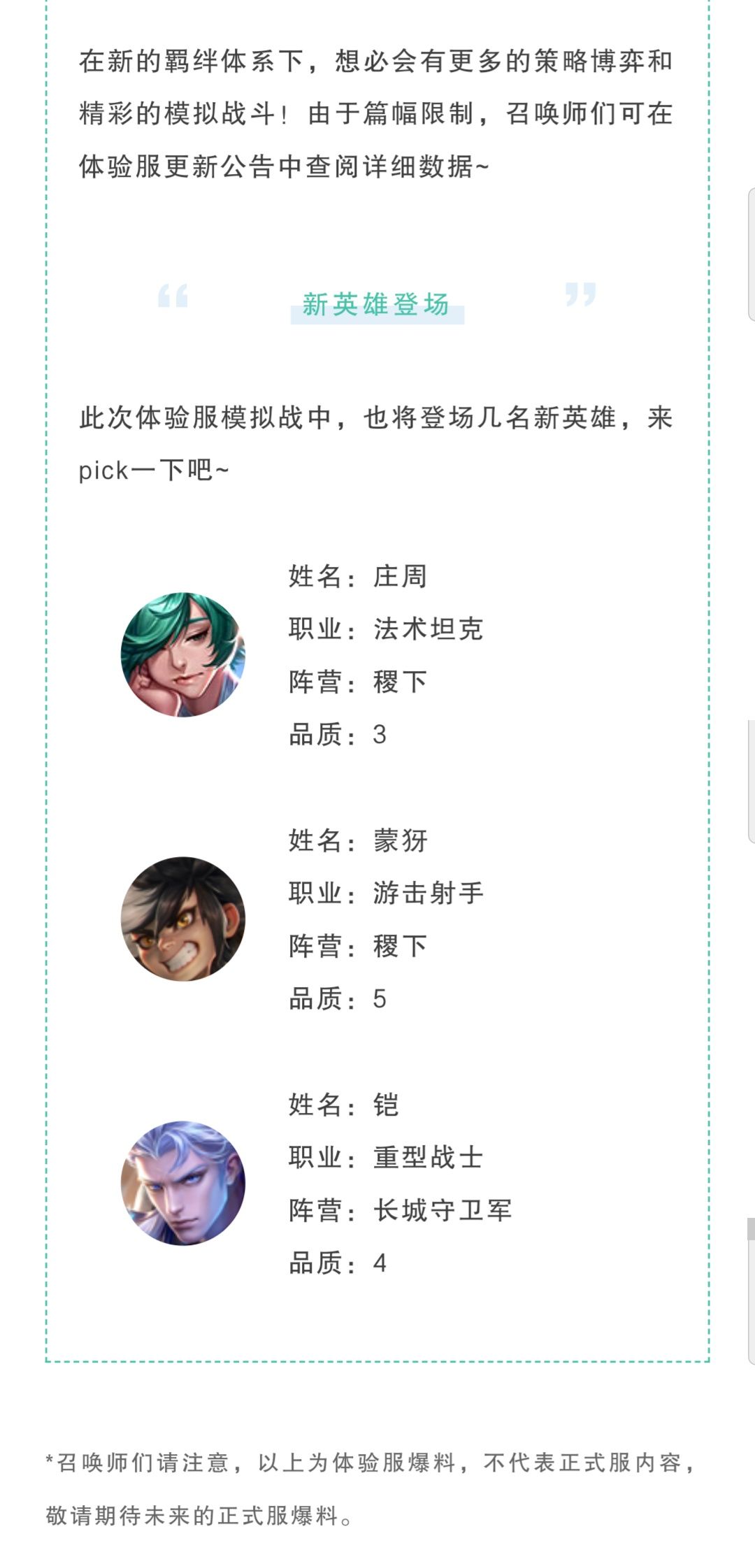 *召唤师们请注意,以上为体验服爆料,不代表正式服内容,敬请期待未来的正式服爆料