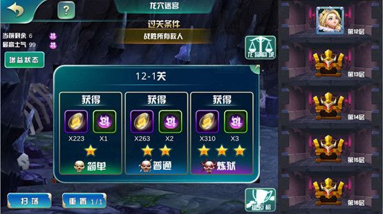 玩家大大们会根据不同的副本,不同的怪物进行排兵布阵,如果遇到通关困难,可以尝试“一键卸装”“一键换装”按钮进行英雄之间的装备调整,属性最大化,劲往一处使,才是通关王道。