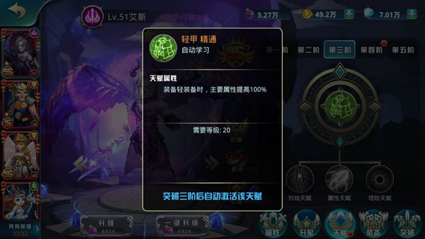 每个英雄都有自己的装备专精,在20级天赋突破三阶后自动激活,就算没有20级,也可以在英雄界面查看,100%的主属性哦~