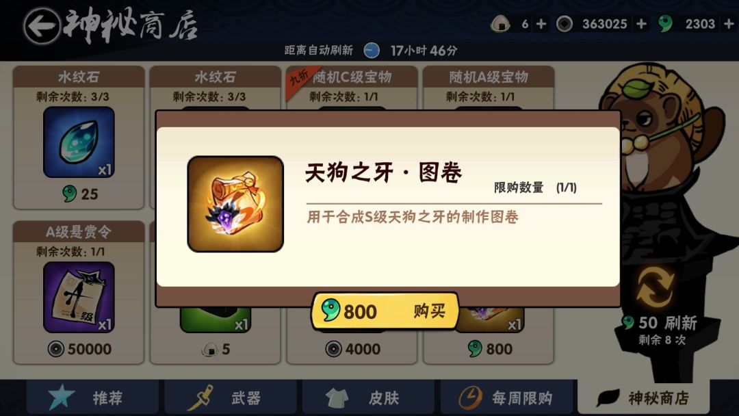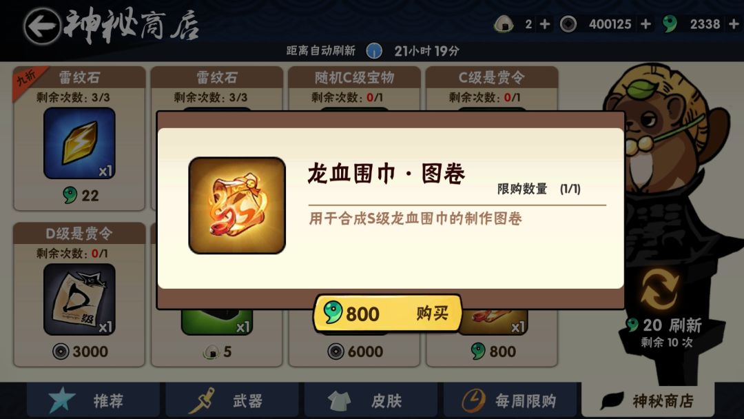 9月9日更新神秘商店后,勾玉最优消费是等待神秘商店刷新你主练角色的专属宝物卷轴S,如小黑的龙血围巾,阿力的超级充电宝等等,虽然这些卷轴看似很贵,但是指向性非常强可以一步到位,实际比在每周限购里200一次S级卷轴的随机赌博划算。勾玉有余的玩家可勾玉刷新两次神秘商店。