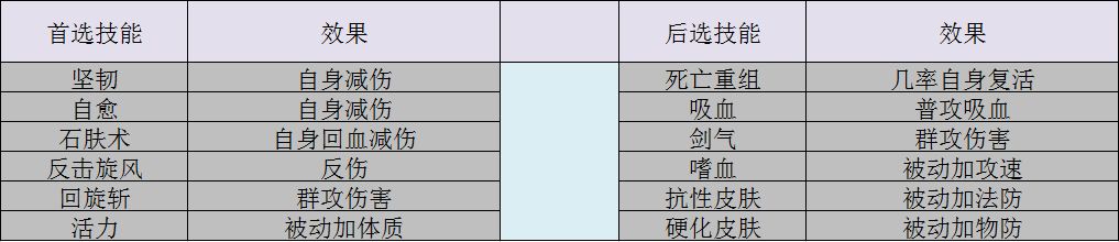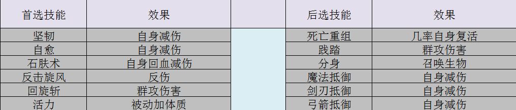 为什么技能不选剑气、飞斧、斩击、死亡收割等攻击技能?技能太多,其实想带不过放不下,而且肉盾的终极任务就是扛伤害,带这么多伤害技能有用吗?要打伤害选死神不更好,要明确关键词防御。