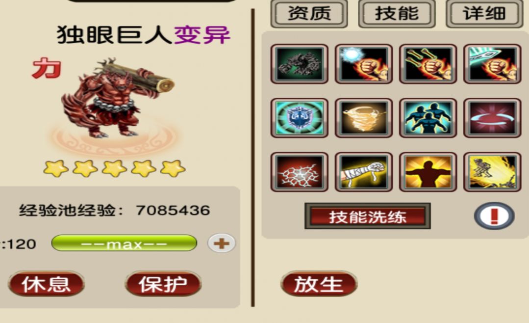 后6个技能:突进>飞斧>幻影分身>致命>践踏>育卵