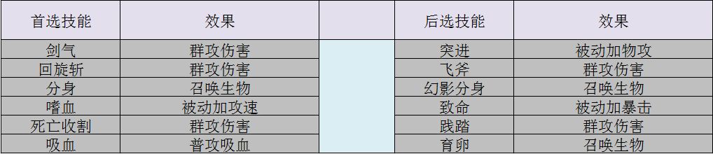首选6技能:剑气+回旋斩+分身+嗜血+死亡收割+吸血