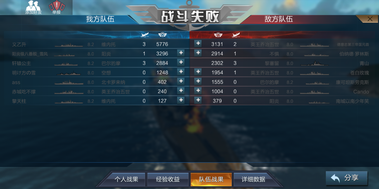 当时我方只剩下我一个人,只有最后的1万血(没有回血了),对面还有不惧,黎塞留和乔五,几乎都是满血。。。。结果被我反杀3个。。。。我只能说:vv依旧强而有力